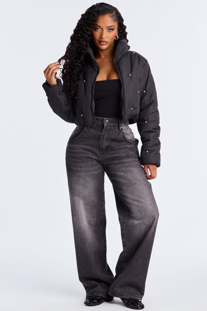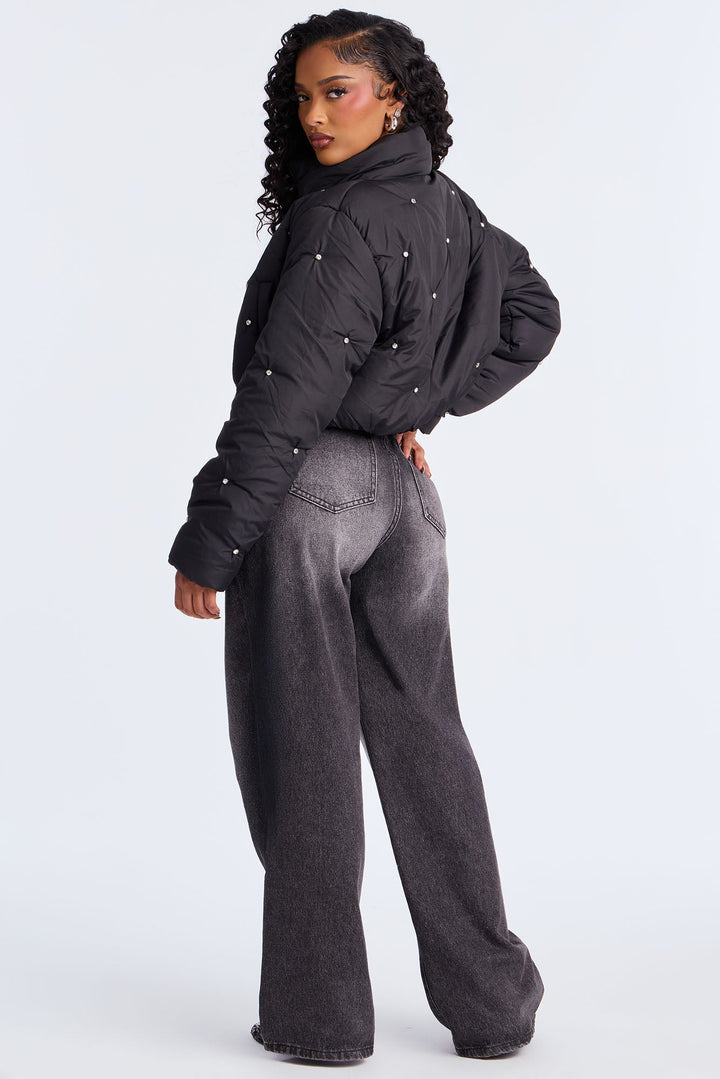Available In Black. | Puffer Jacket | Collar | Long Sleeve | Nylon | Embellished | Full Zip | Cropped | Fully Lined | Side Pockets | Shell/Lining: 100% Polyester | Imported