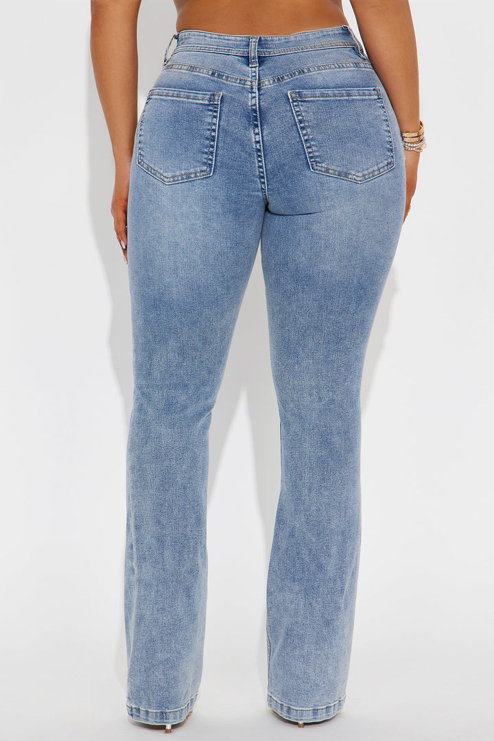 Available In Medium Wash. | Bootcut Jean | 4 Pocket | Cut Out Detail | Exposed Seaming | 11" High Rise | 32" Inseam | Low Stretch | Disclaimer: Due To The Specialized Wash, Each Garment Is Unique. | 75% Cotton 24% Polyester 1% Spandex | Imported
