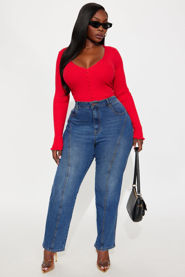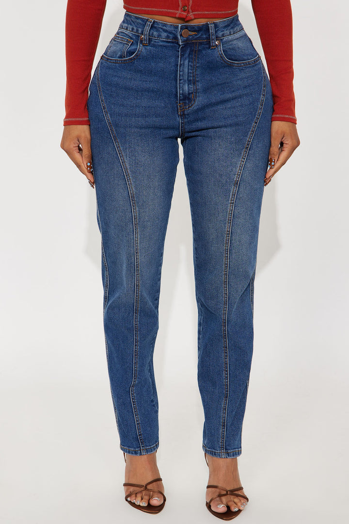 Available In Dark Wash. | Mom Jean | 5 Pocket | Seaming | 12" High Rise | 28.5" Inseam | Medium Stretch | Disclaimer: Due To The Specialized Wash Process, Each Garment Is Unique. | 70% Cotton 27% Polyester 3% Spandex | Imported