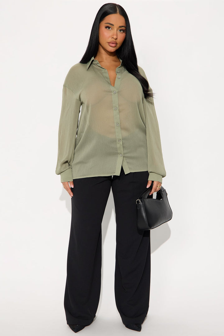 Available In Burgundy And Olive. | Shirt | Collar | Long Sleeve | Chiffon | Sheer | Non Stretch | Self : 100% Polyester | Imported