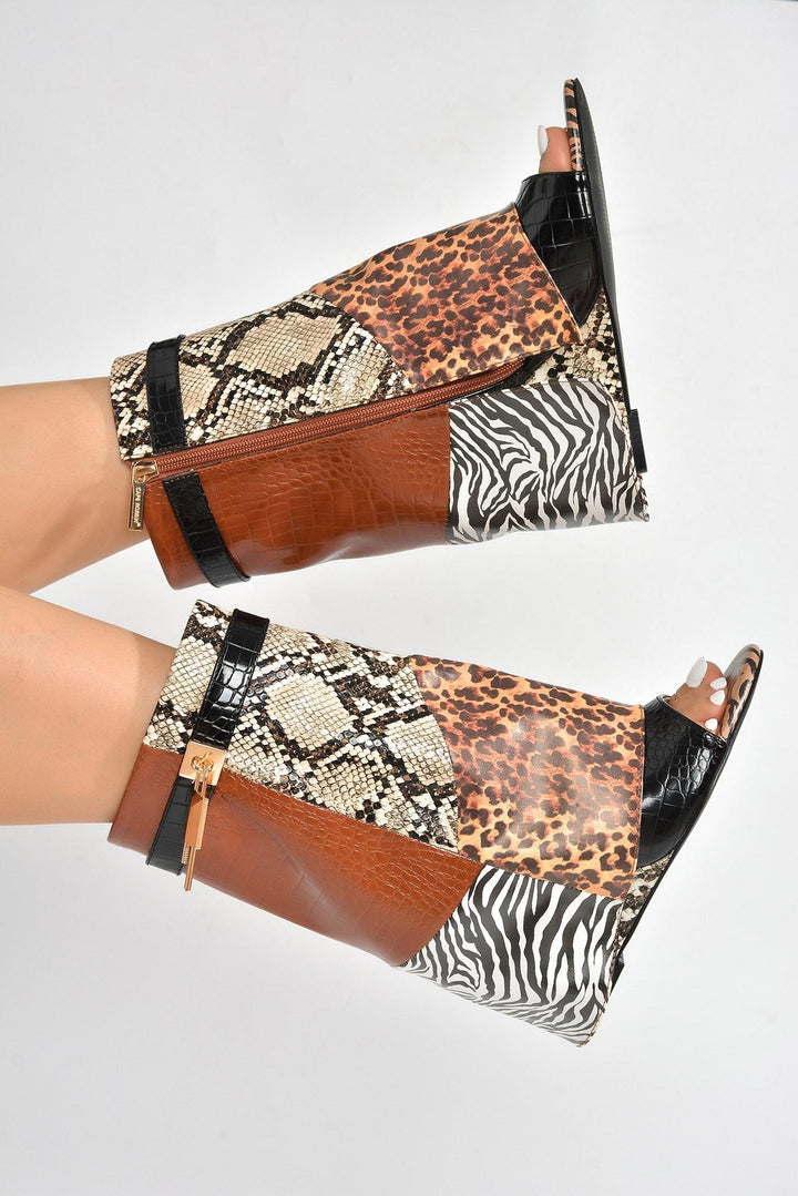 BETTERBABE - MULTI - BOOTS by CAPE ROBBIN round toe fold-over boots high heel wedge peep toe crocodile skin animal prints snakeskin Stay locked in and fashionable! Walk in these Betterbabe fold-over boots and be the evening's eye candy. The bold texture and combination will turn you into a trend-setting fashionista. Comes in denim,multi,or camo.