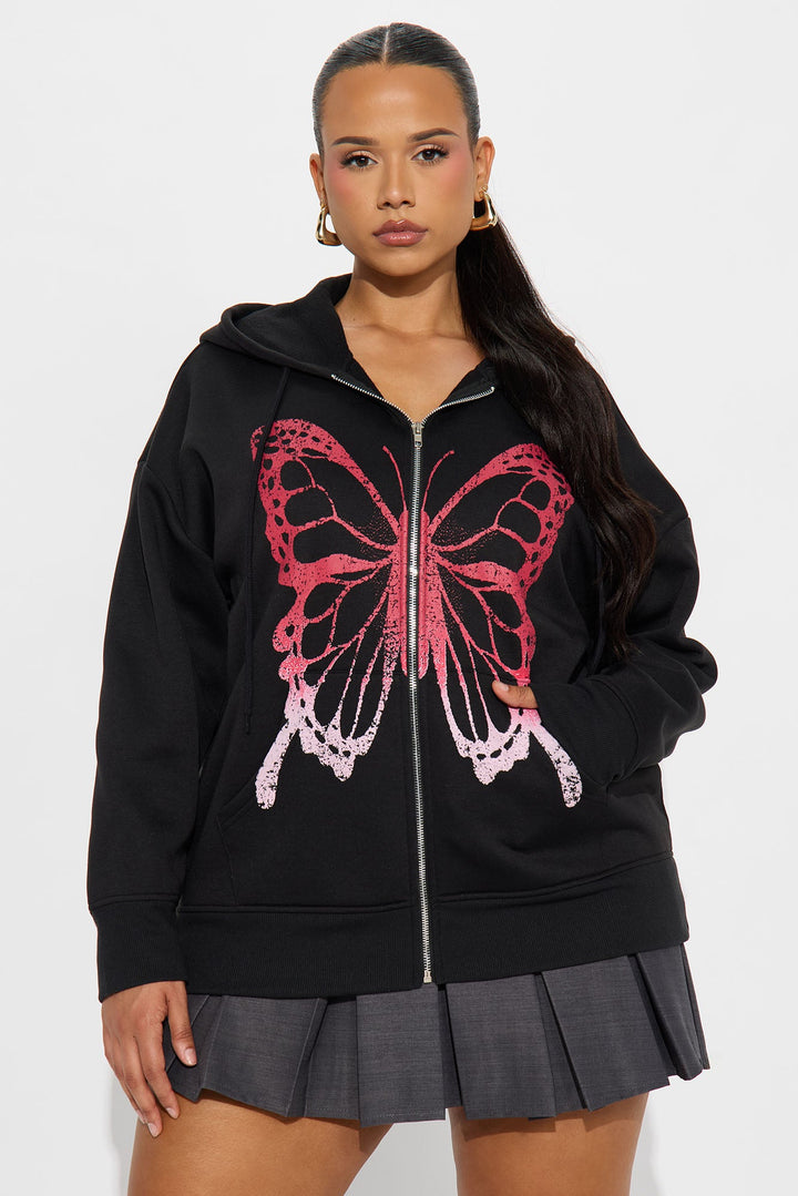 Bianca Ombre Butterfly Full Zip Hoodie - Black