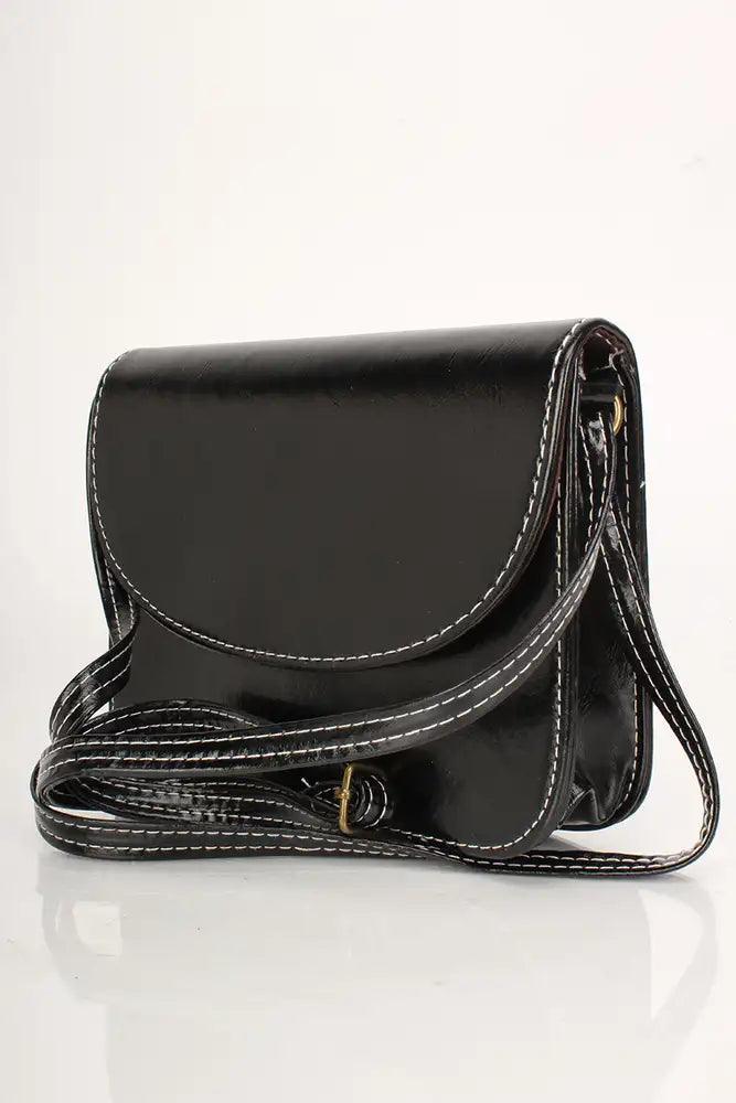 Add this super cute handbag to your casual outfit for the perfect look! Featuring; faux leather, button clasp closure, adjustable strap, brown interior, stitching. Height: 6 inches, Width: 7 1/2 inches. Depth:2 inches.
