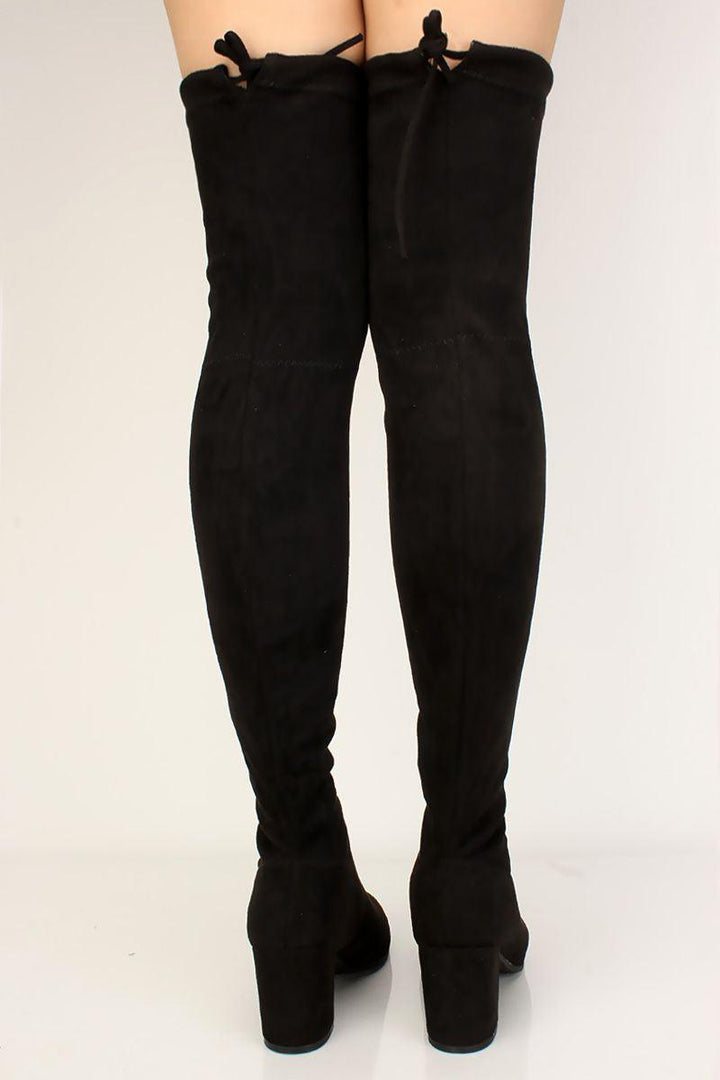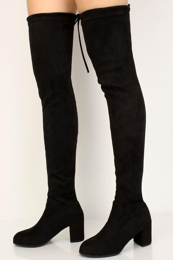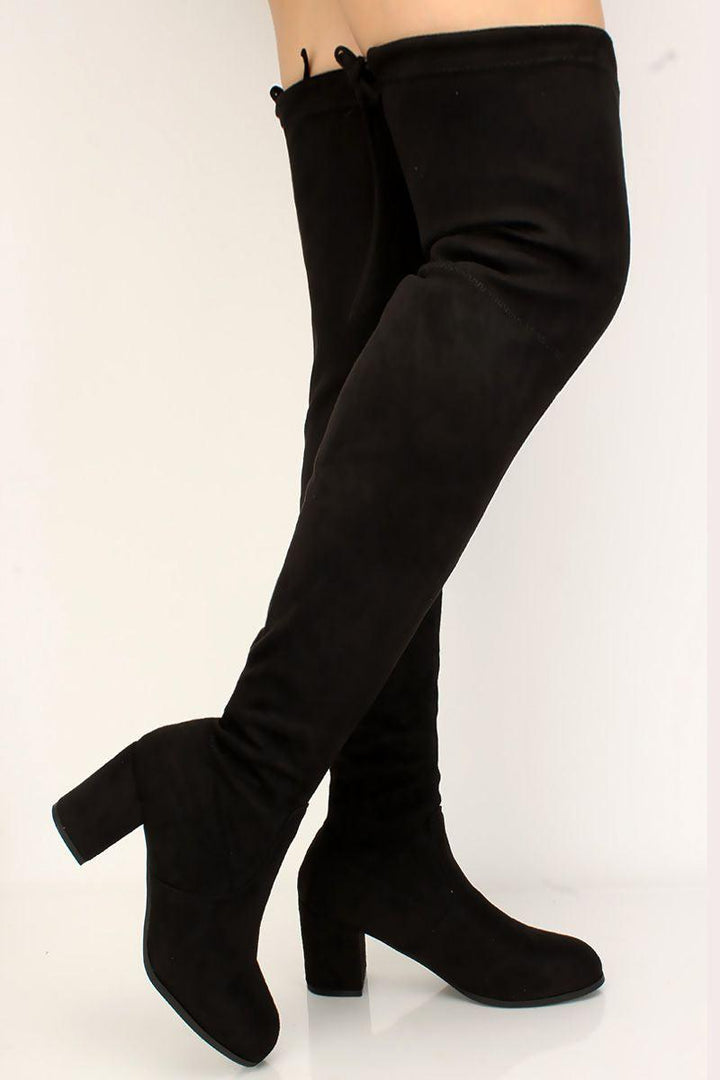 Black Suede Stay Up Chunky Heel Thigh High Over The Knee Boots