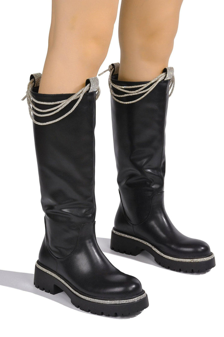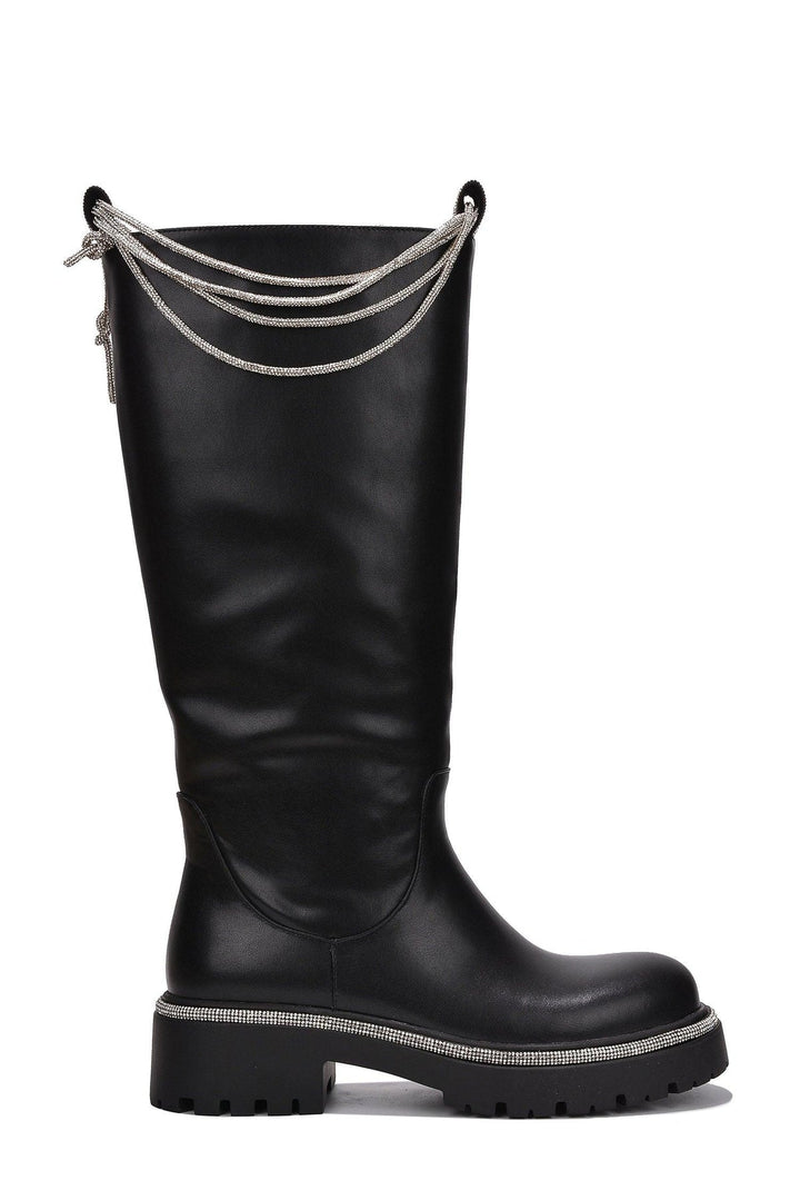 BLANKO - BLACK - BOOTIES by CAPE ROBBIN black booties round toe diamante boots black rhinestone boots rhinestone rope The Blanko black booties are the perfect way to add a touch of sparkle to your outfit. These stylish boots feature a round toe and are adorned with rhinestones for a glamorous look. The rhinestone rope detail adds a touch of texture and makes them a unique and eye-catching addition to any wardrobe. These booties will take you from day to night with ease.