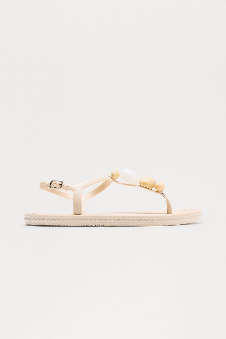Available In Black And Ivory. | Flat Sandals | Stone Embellishment | Round Toe | Flat Heel | Imported