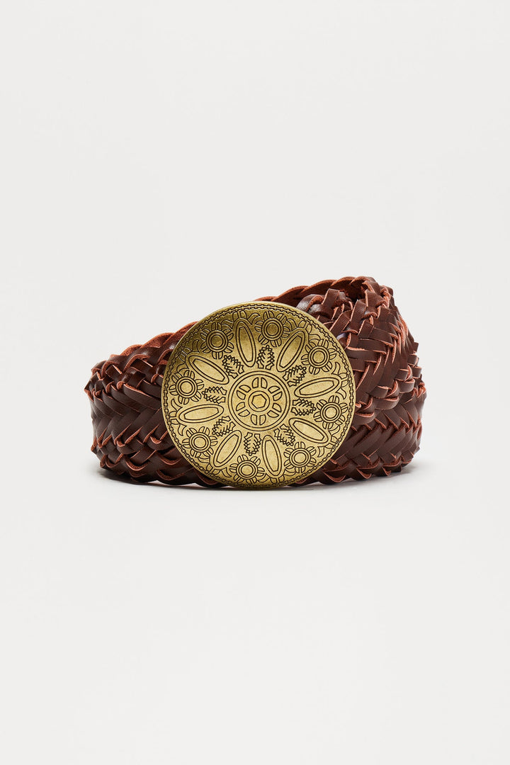 Available In Brown. | Wide Belt | Braided Design | Faux Leather Material | Buckle Detail | Imported
