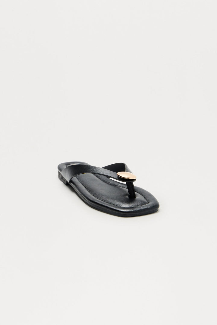 Available In Black, Brown, Multi Color And White. | Flat Sandals | Flip Flops | Hardware Detail | Square Toe | Flat Heel | Imported