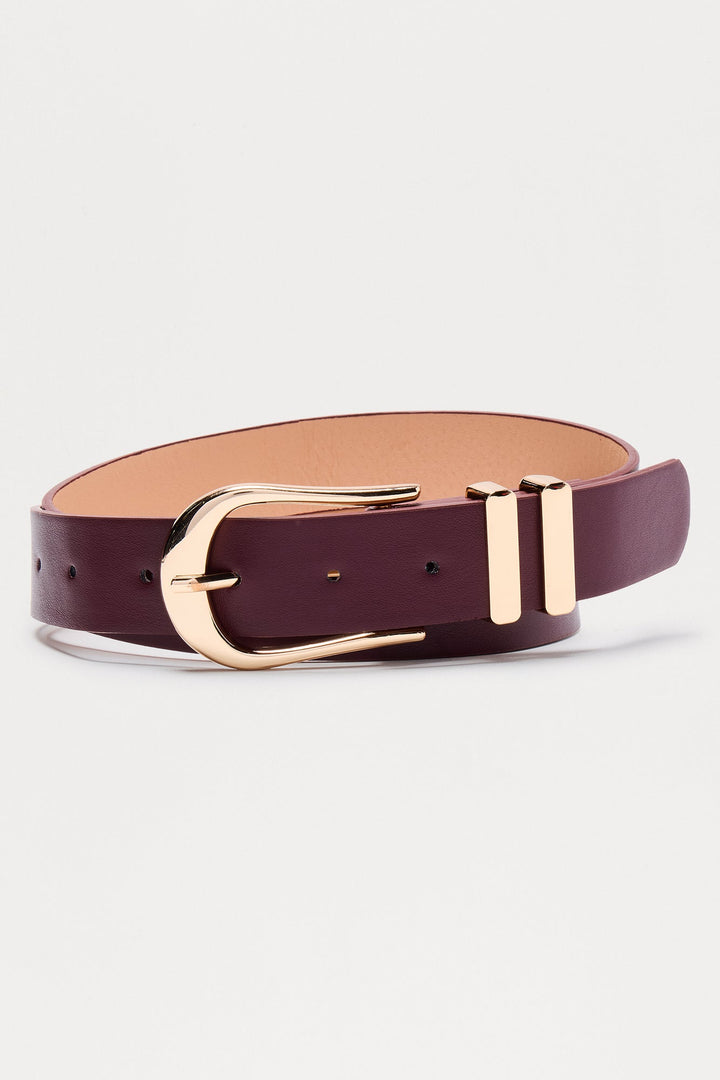 Available In Black And Wine. | Faux Leather Belt | Hardware Detail | Length: 43" | Imported