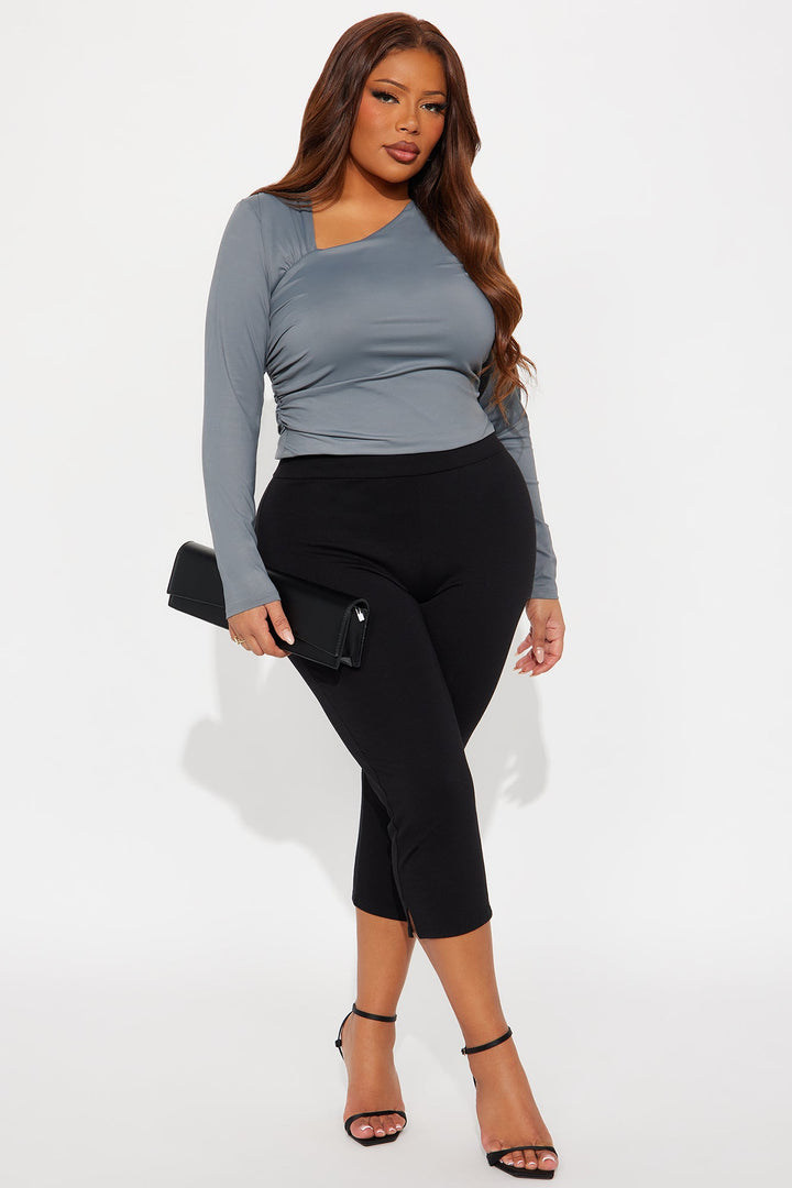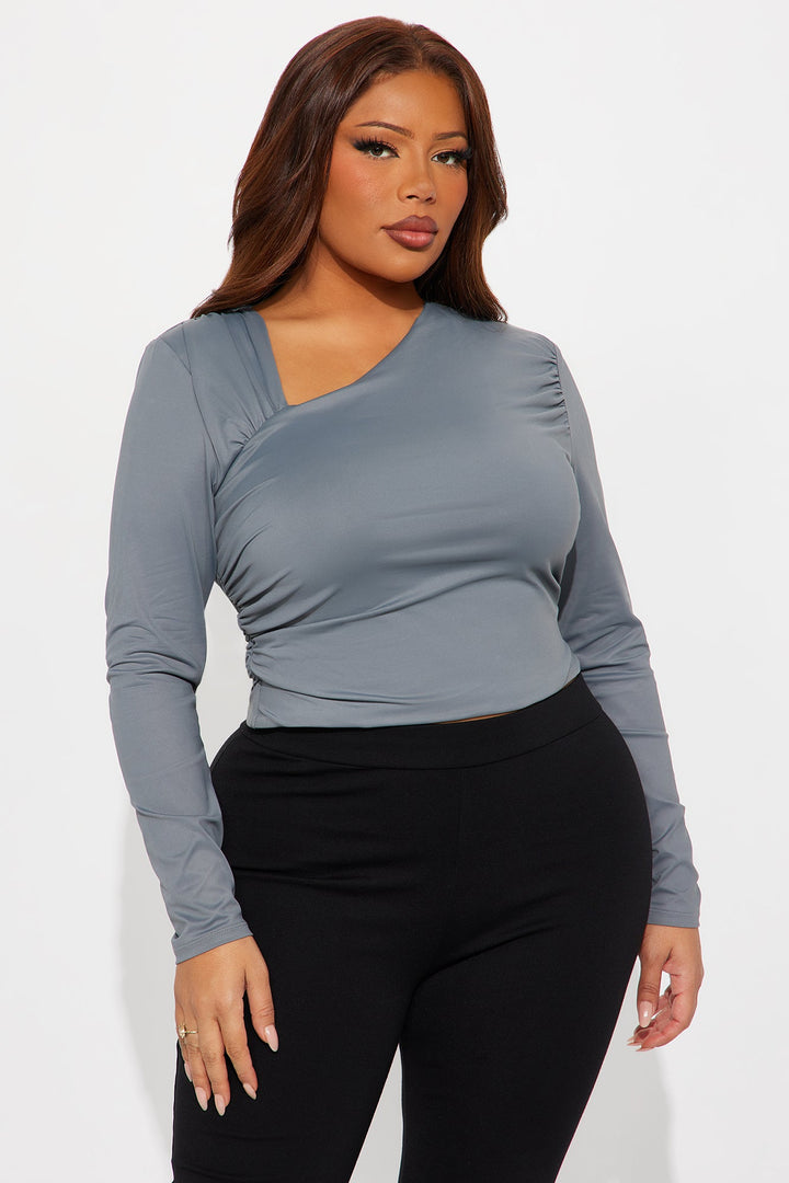 Brenda Ruched Long Sleeve Top - Grey