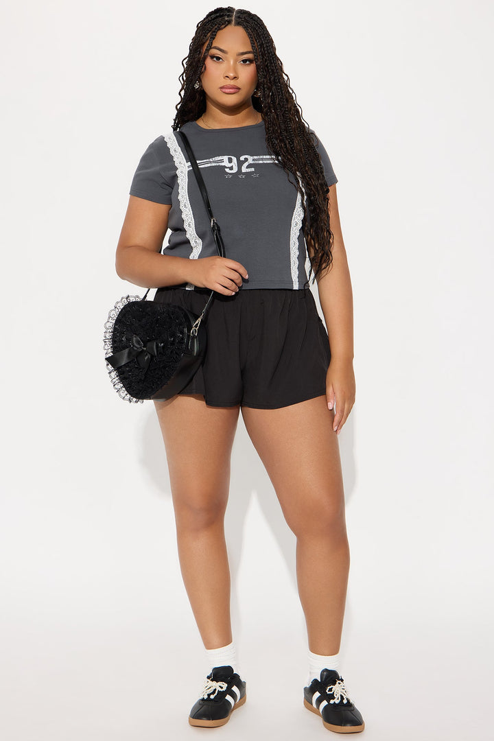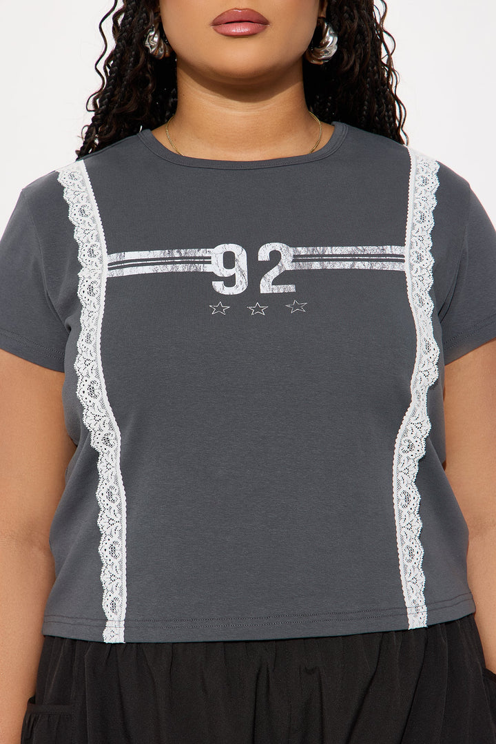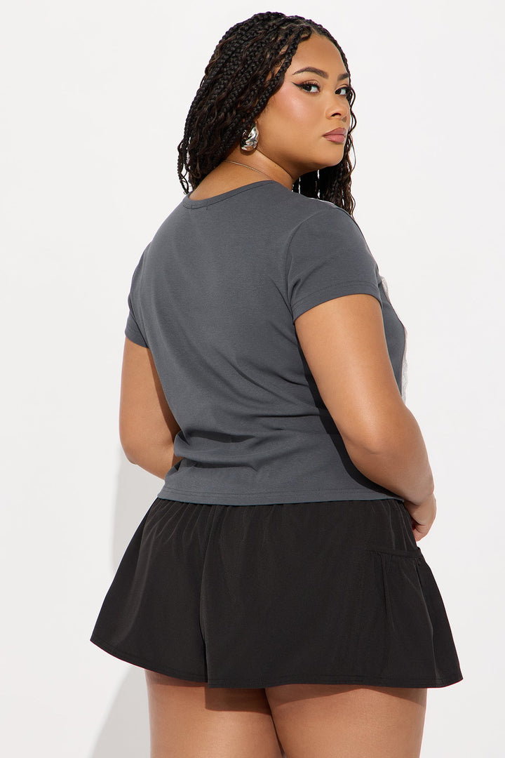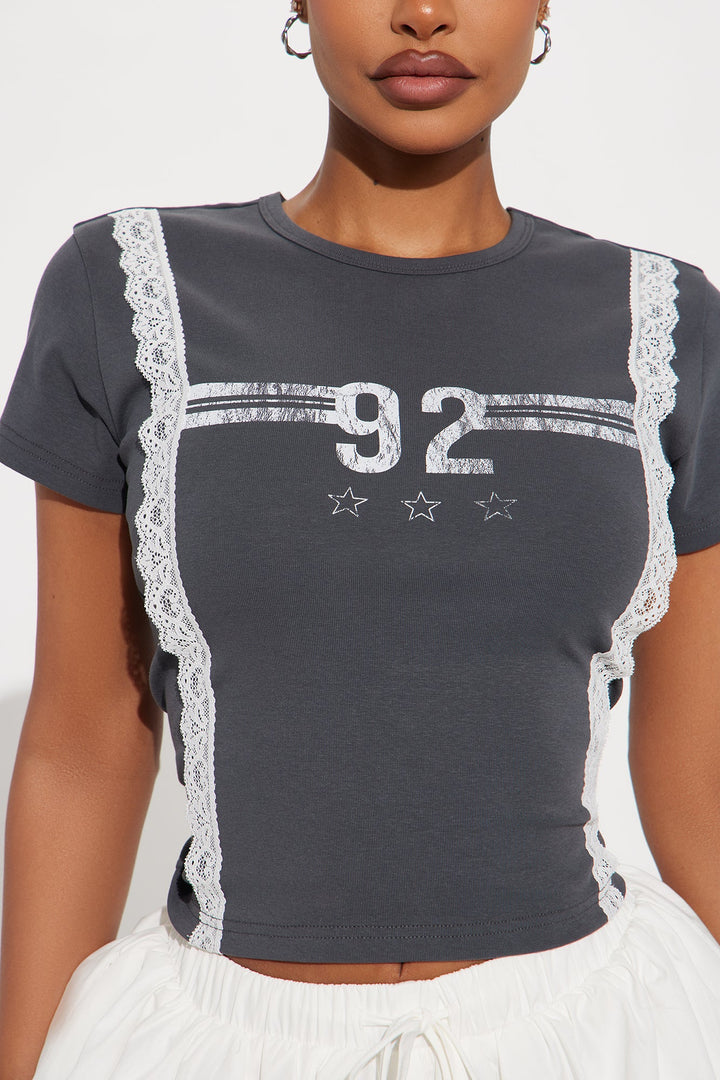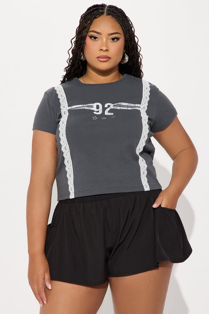 Brianne Lace Baby Tee - Charcoal