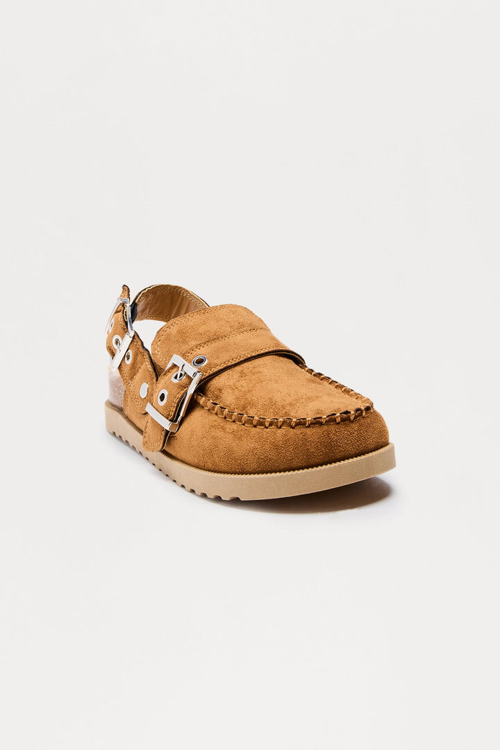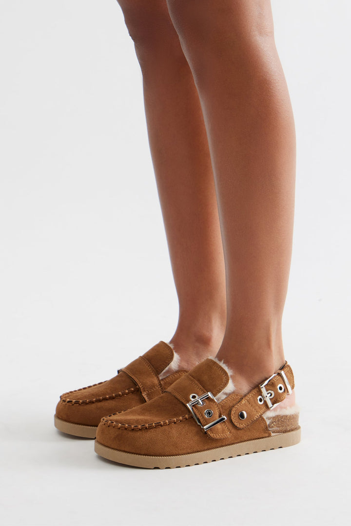 Available In Black And Camel. | Casual Slides | Faux Fur Lining | Hardware Detail | Round Toe | Flat Heel | Imported