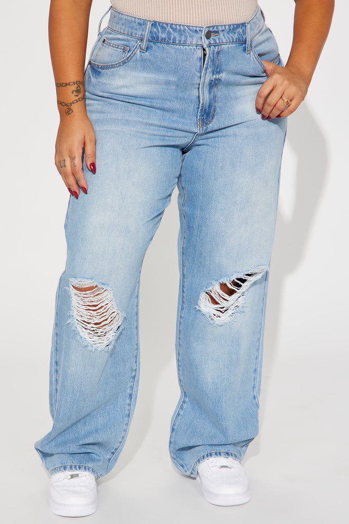 Available In Light Wash. | Straight Leg Jean | 5 Pocket | Ripped | 11" High Rise | 32" Inseam | Non Stretch | Disclaimer: Due To The Specialized Wash & Distressing Process, Each Garment Is Unique. | 100% Cotton | Imported