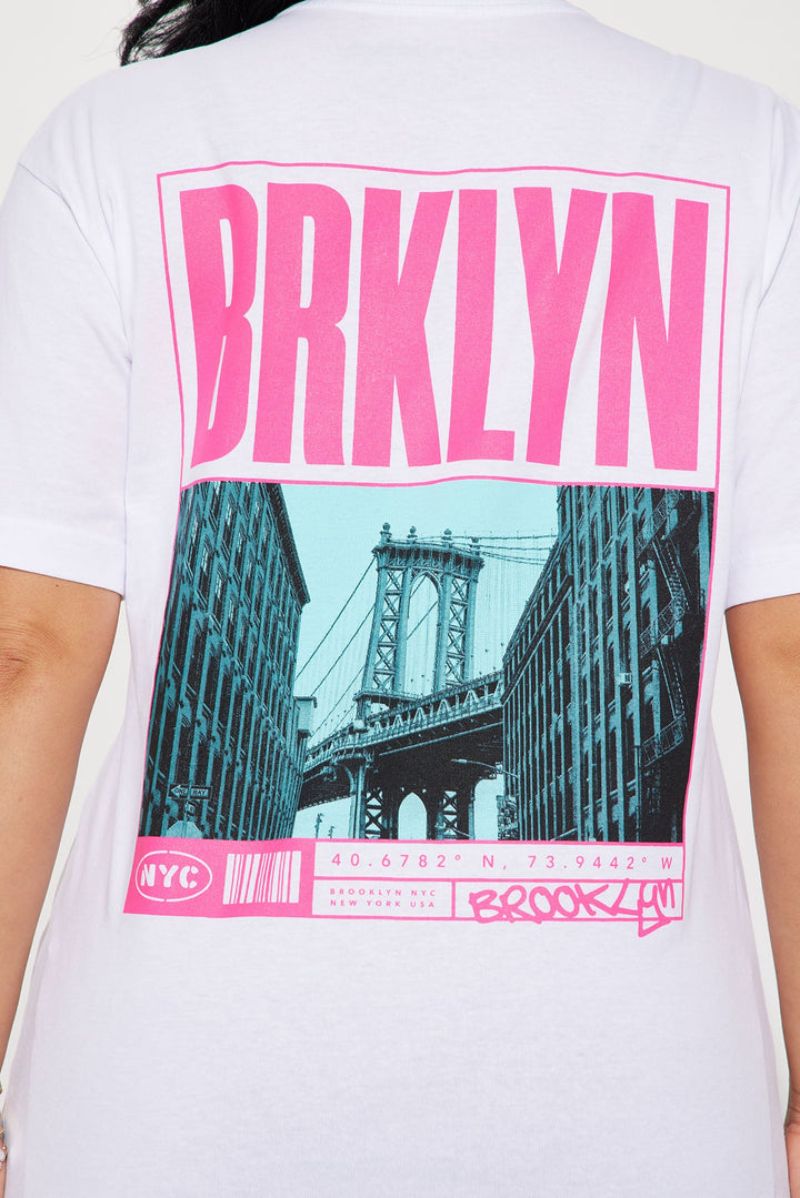 Available In White. | Front And Back Screen | Brooklyn Graphic | Short Sleeve | Crew Neck | Disclaimer: Due To The Printing Process A Difference In Saturation May Occur. Each Garment Is Unique. Print Placement Will Vary. | 100% Cotton | Imported