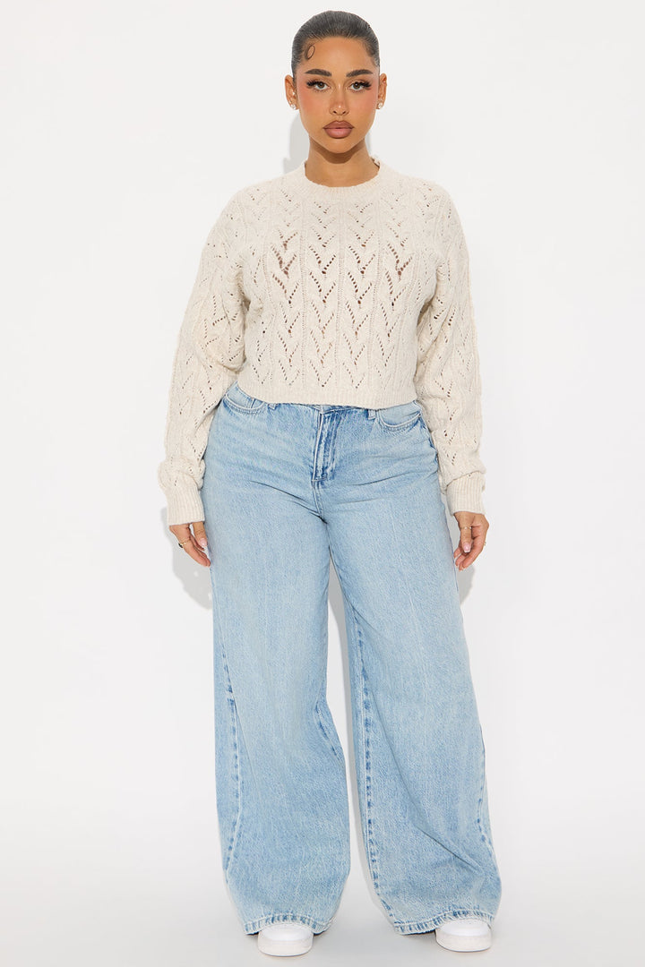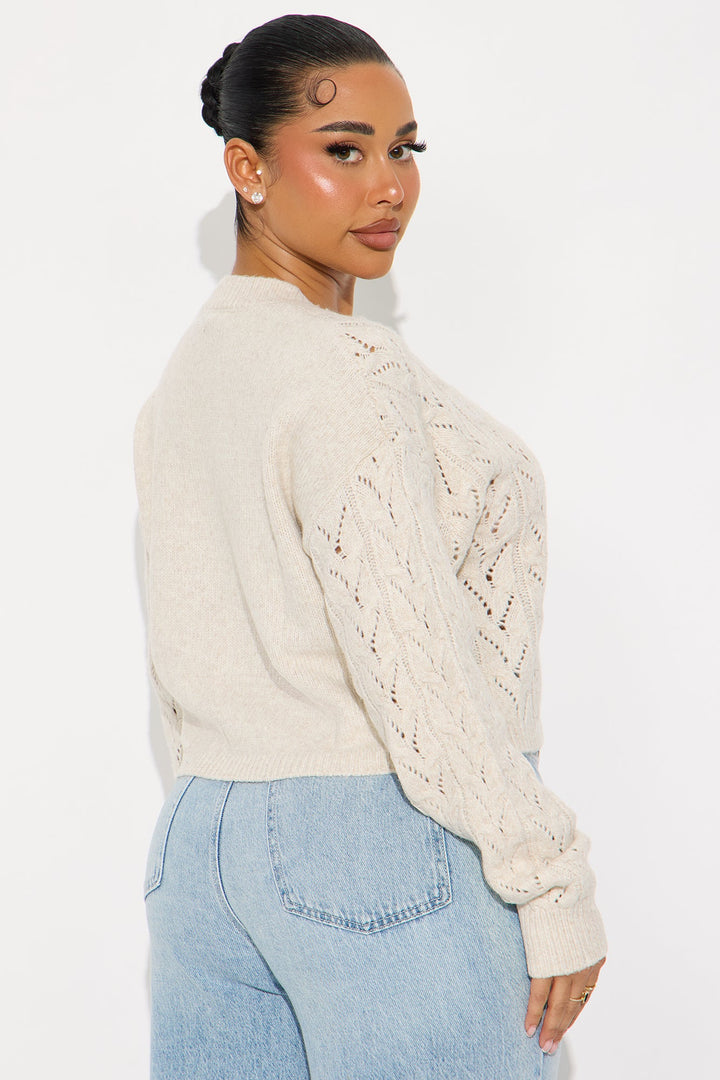 Available In Chestnut And Oatmeal. | Pullover Sweater | Pointelle | Crew Neck | Self : 100% Polyester | Imported