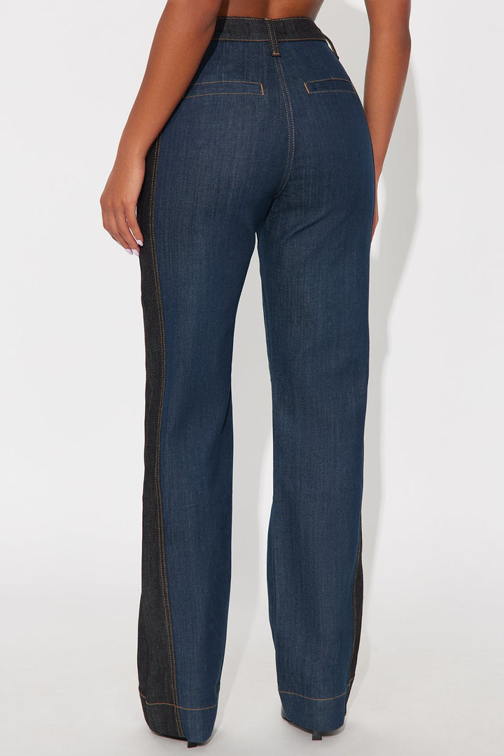 Available In Dark Wash. | Pair With Busy Body Stretch Tailored Bustier To Complete The Look! | Straight Leg Jean | Snap Button Front Pockets | Non Functional Back Pockets | Two Tone | 11.5" High Rise | 33" Inseam | Medium Stretch | Disclaimer: Due To The Specialized Wash, Each Garment Is Unique. | 92% Cotton 5% Polyester 3% Spandex | Imported