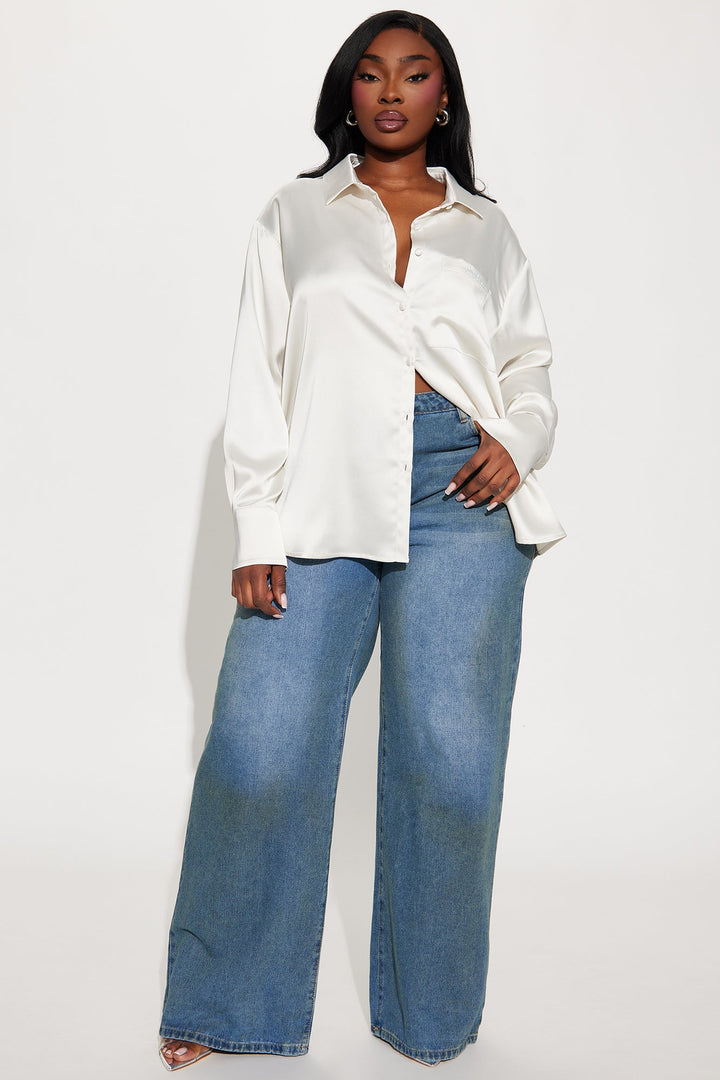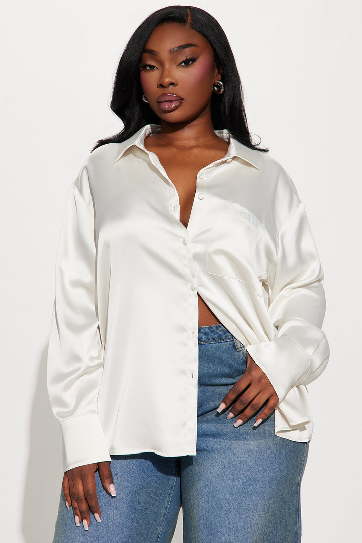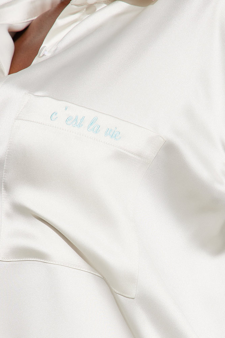 Available In Black/combo And Ivory/combo. | Satin Long Sleeve Shirt | Embroidered "C'est La Vie" Verbiage | Non Stretch | Button Front | Front Pocket | Shell : 96% Polyester , 4% Spandex | Imported