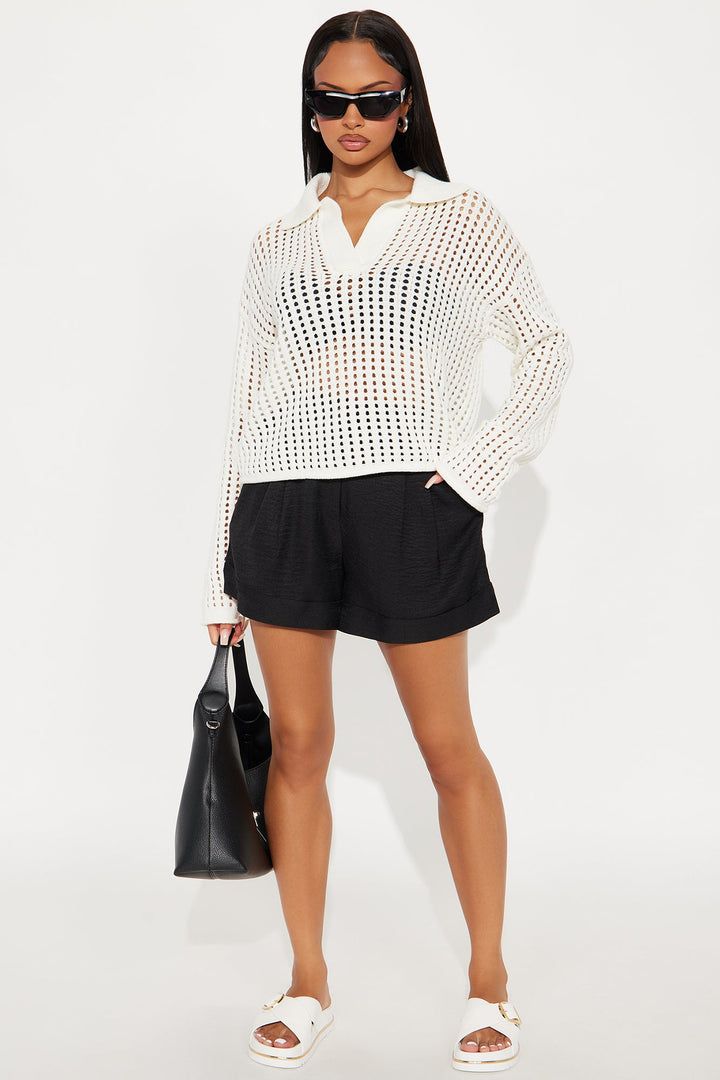 Available In White. | Polo Sweater | Crochet | Self: 60% Cotton 40% Acrylic | Imported