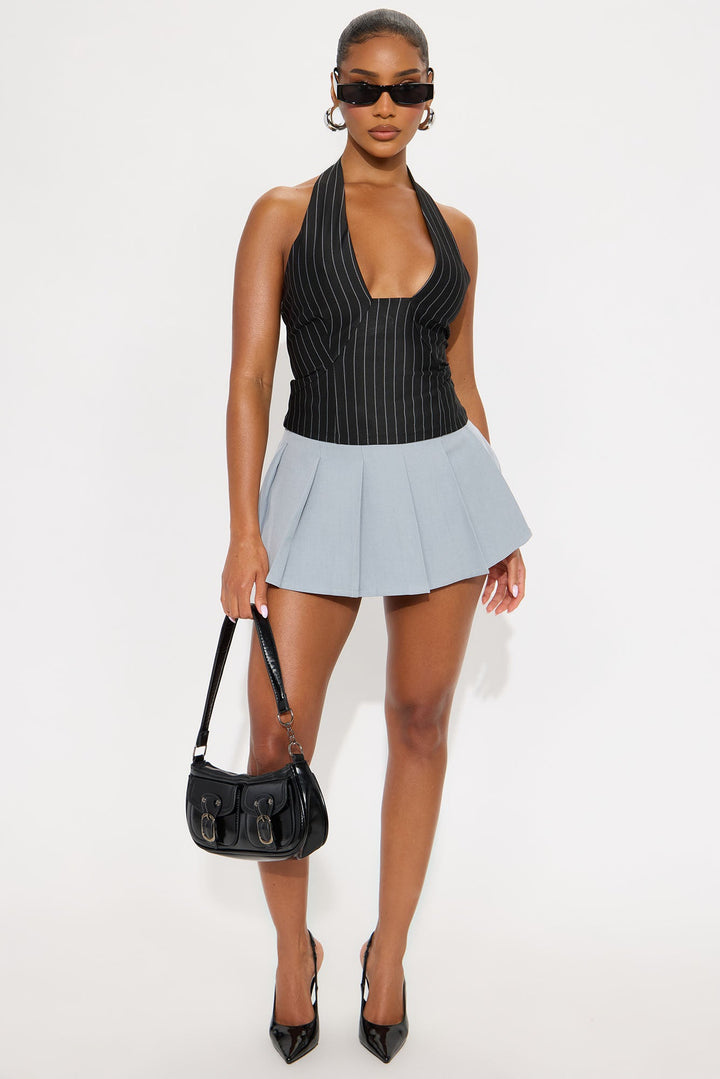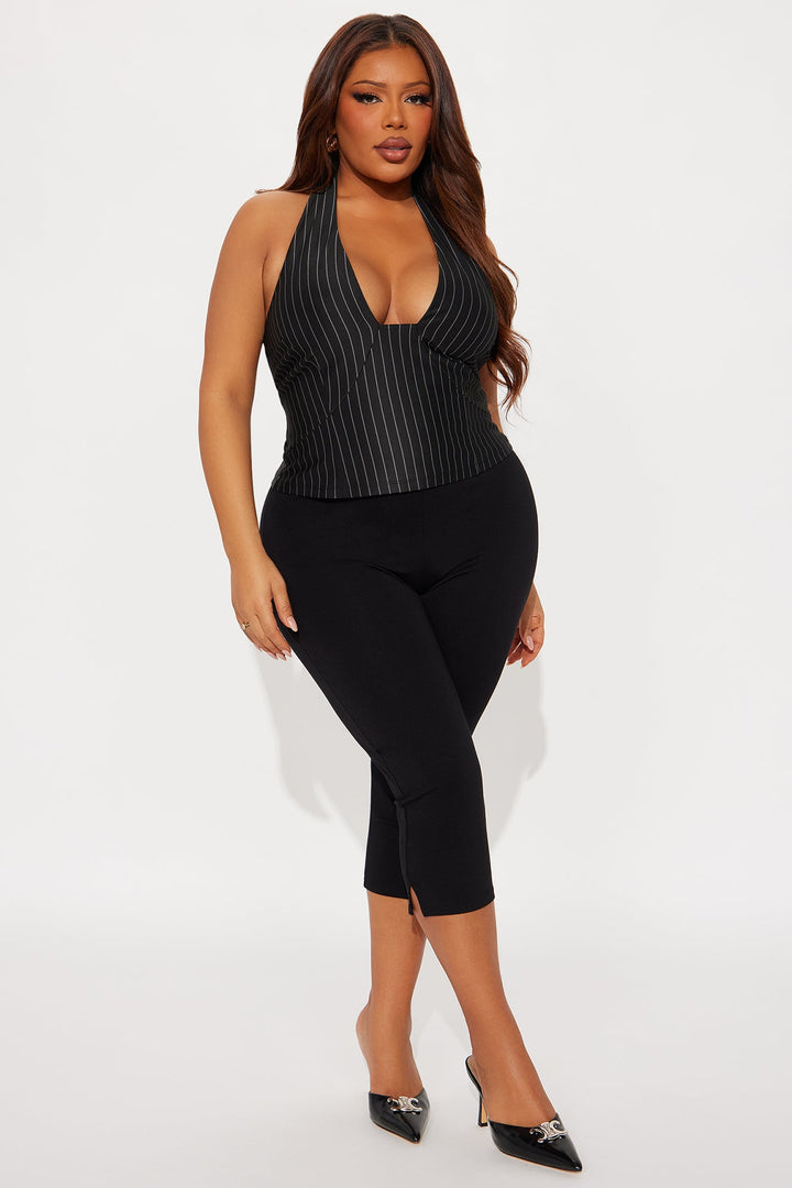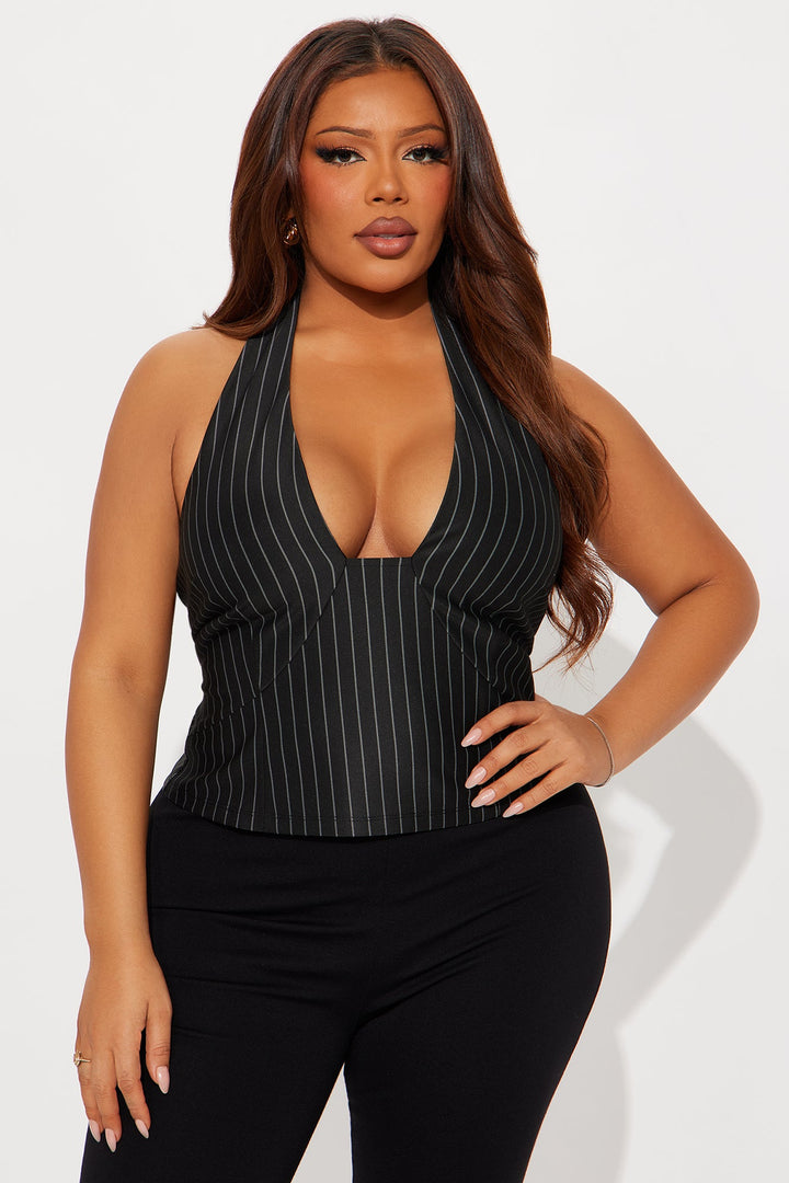 Call Me Selfish Pinstripe Halter Top - Black/combo