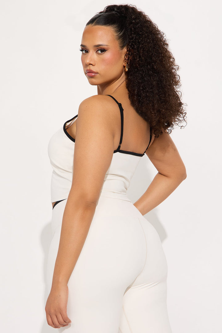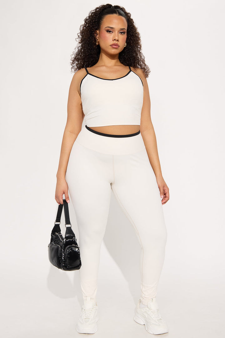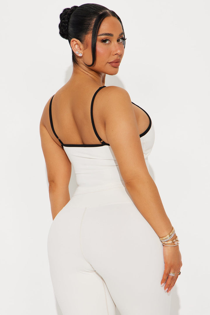 Available In Butter Yellow And Cream. | Active Top | Scoop Neck | Sleeveless | Tricot | Contrast Trim | Adjustable Straps | Low Impact | Stretch | Pair With "Calm And Collected Active Legging" "Calm And Collected Active Fold Over Short" | 75% Nylon 25% Spandex | Imported