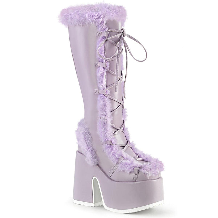 5"" (12.7cm) Platform Goth Punk Gogo Faux Fur Lining and Upper Detail Knee Boot, Full Inner Side Zip Closure