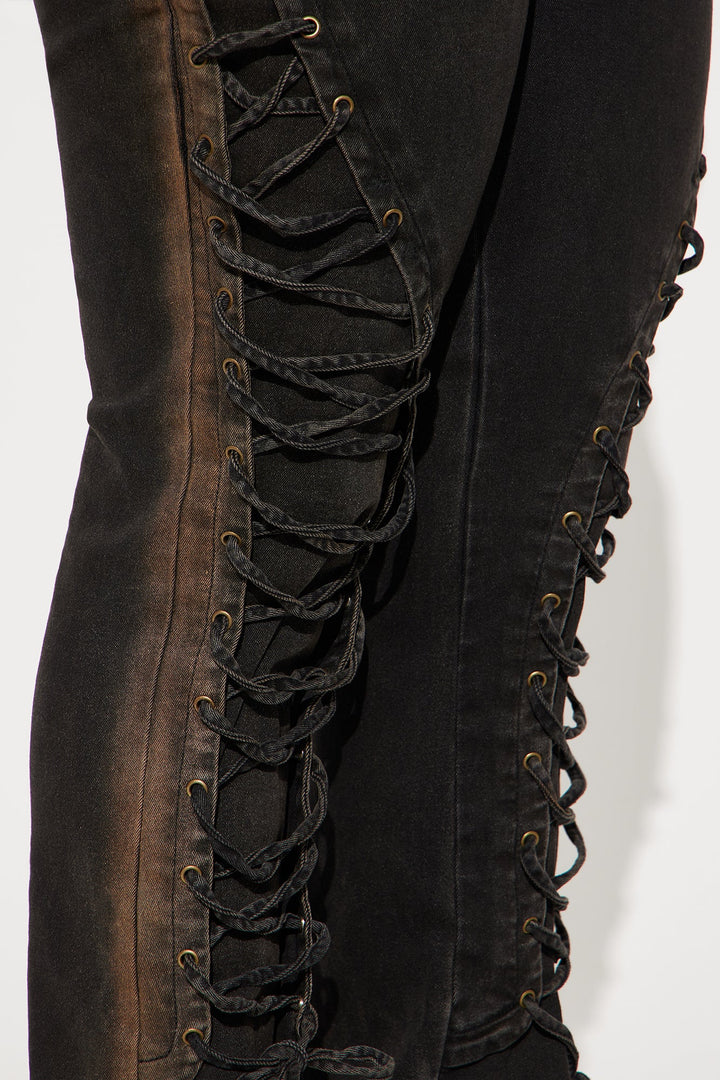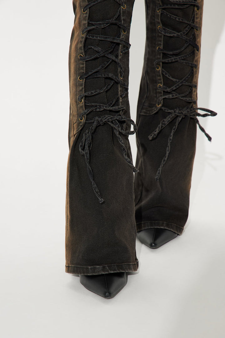 Can't Be Tamed Lace Up Bootcut Jeans - Black/combo