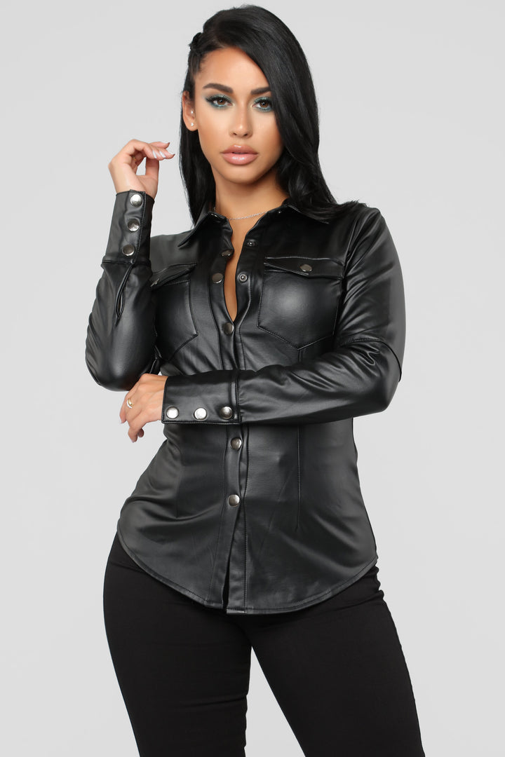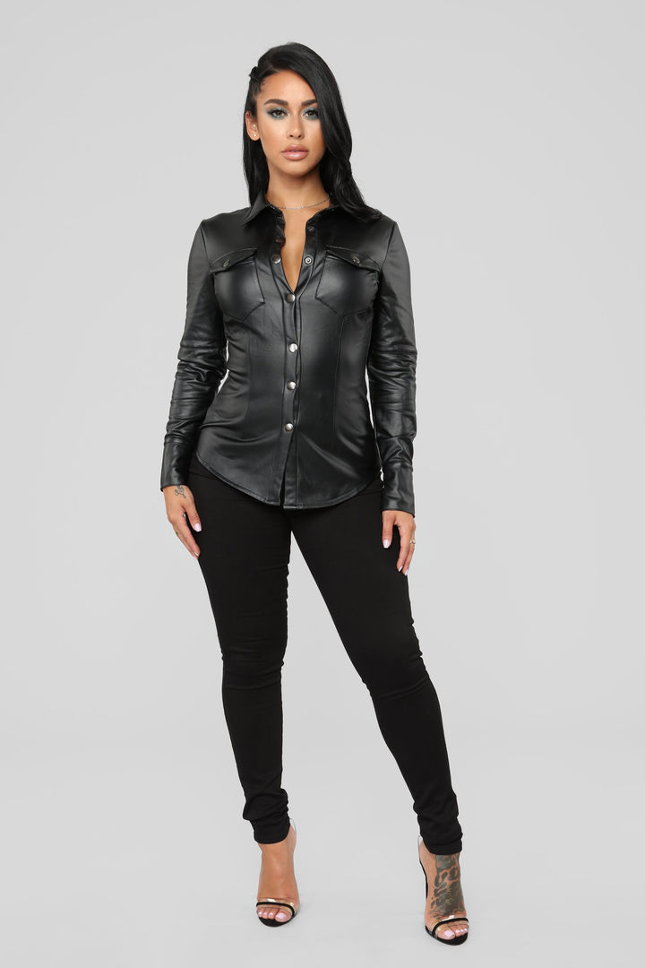 Available In Black. | Button Down | Collared | 2 Pockets | Long Sleeve | 50% Polyurethane 50% Polyester | Imported