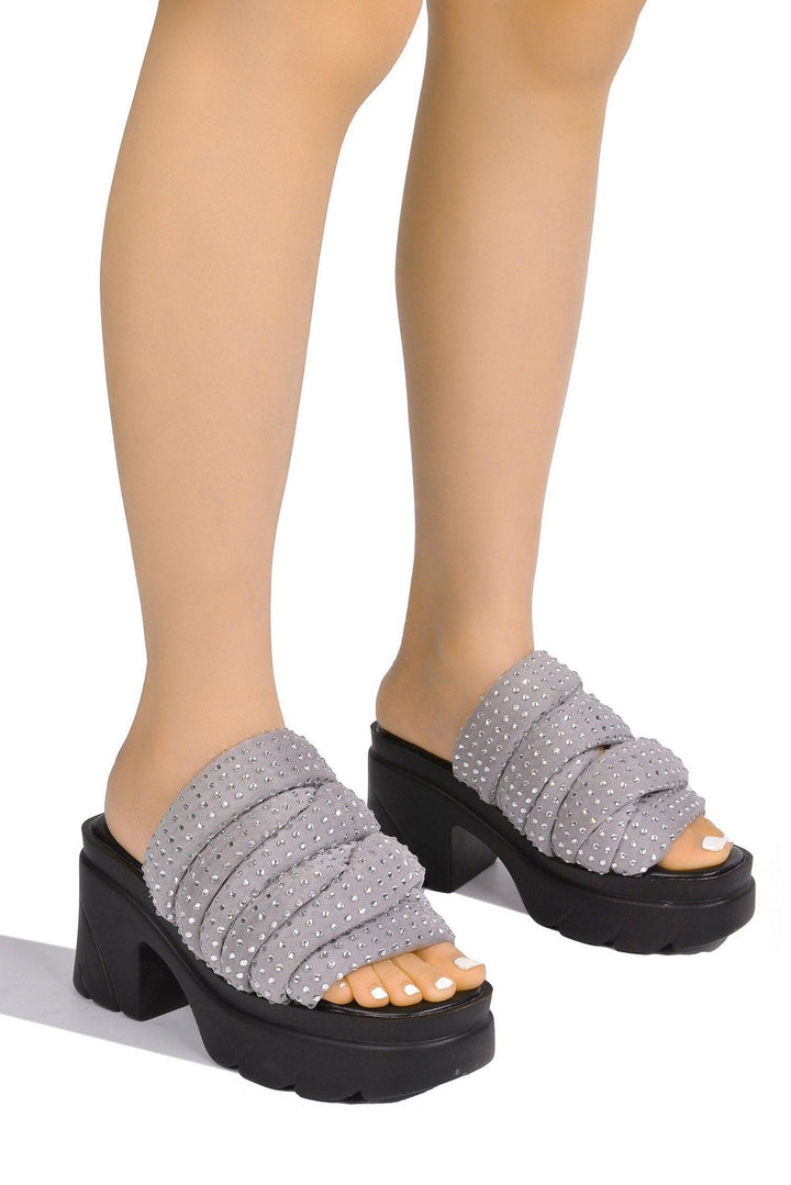 CANI - BLACK - SANDALS by CAPE ROBBIN round toe platform lug sole mid block heels rhinestone trim spandex wide foot friendly These Cani mid block heels are perfect for a night out. The rhinestone trim on spandex adds a touch of sparkle and glamour,while the mid block heel gives you a comfortable lift that will get you noticed. They come in black and multi.