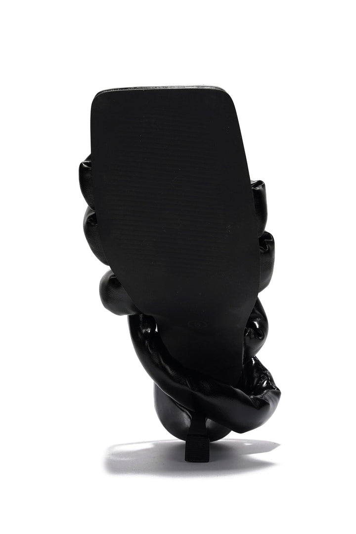 CARLENE - BLACK - HEELS by CAPE ROBBIN Sculpted heel: 3-inch Slip on PU Leather insole with memory foam cushioning for added comfort Oversize padded straps Square toe Meet luxurious elegance with the Carlene Metallic Slip-On Heel Sandals. These chic sandals feature a bold metallic finish with padded straps, designed to add a touch of luxury to any outfit, making them a must-have for the modern fashionista. Whether you're heading to a gala or a night out on the town, these heels will ensure you shine with every step.