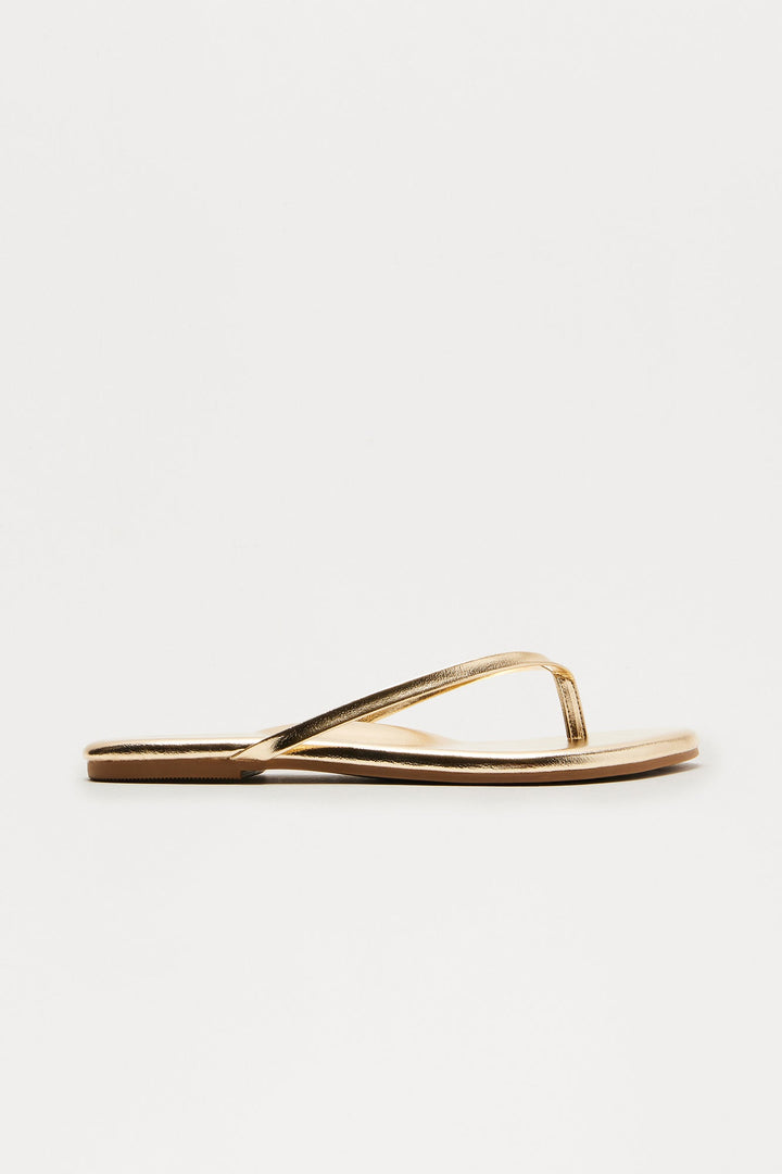 Carola Faux Patent Flip Flops - Gold