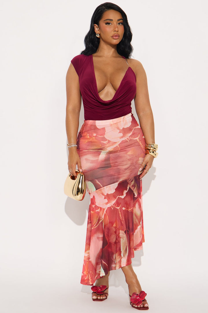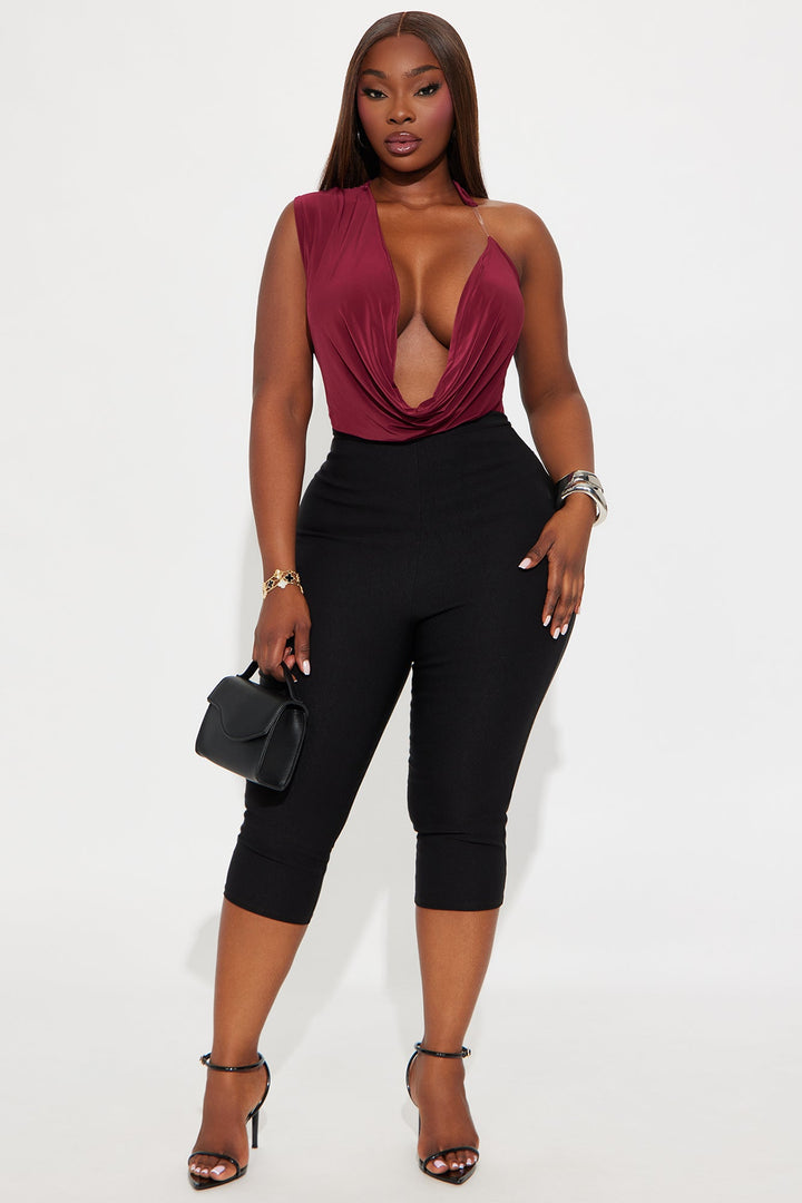 Cascading Passion Cowl Neck Bodysuit - Burgundy