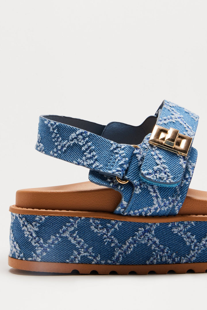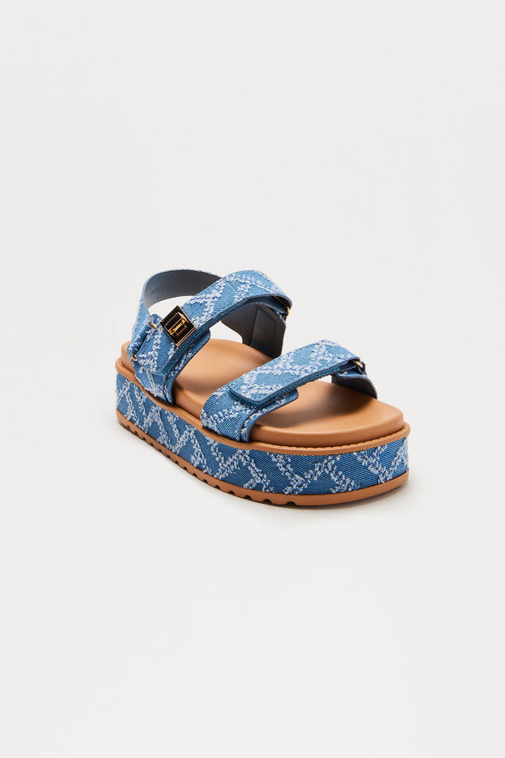 Available In Denim. | Flat Sandals | Buckle Detail | Round Toe | Flat Heel | Imported