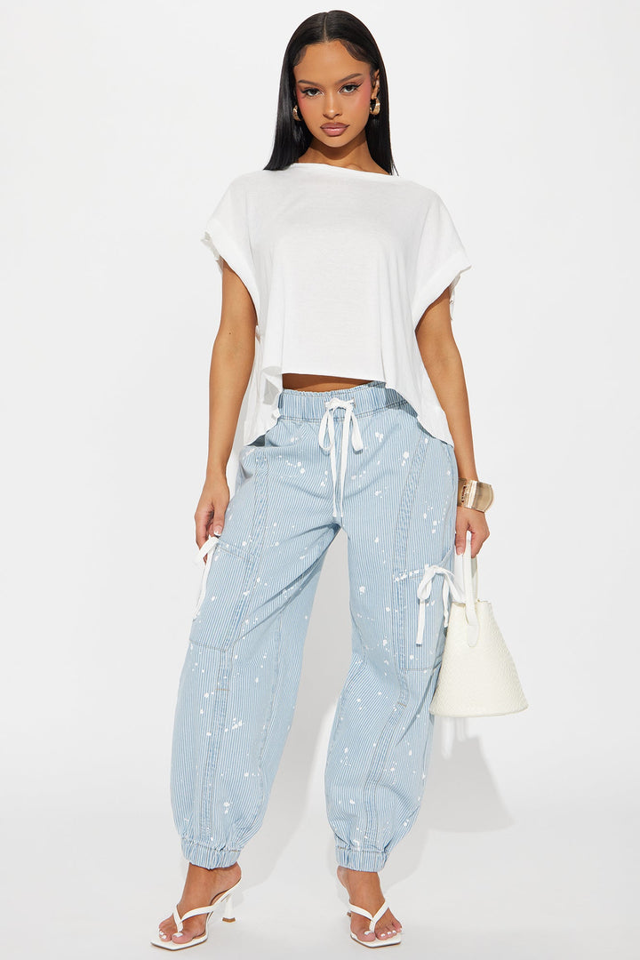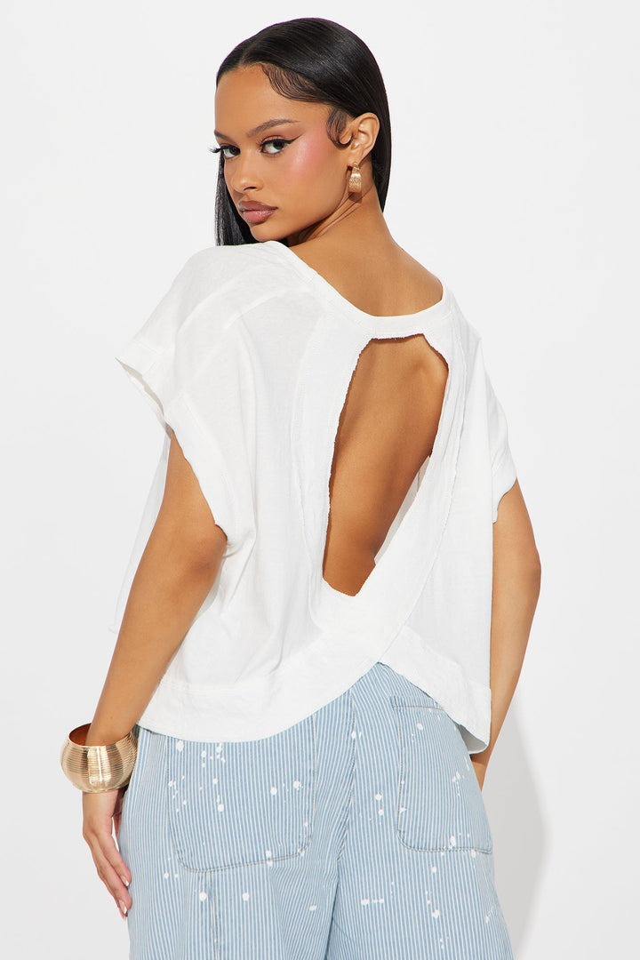 Available In White. | Short Sleeve Top | Crew Neck | Open Back | Stretch | Self: 67% Cotton 33% Polyester | Contrast: 62% Polyester 33% Cotton 5% Spandex | Imported