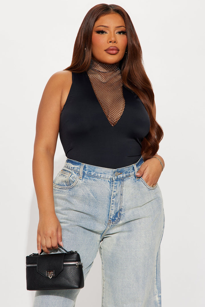 Cataleya Mesh Rhinestone Bodysuit - Black