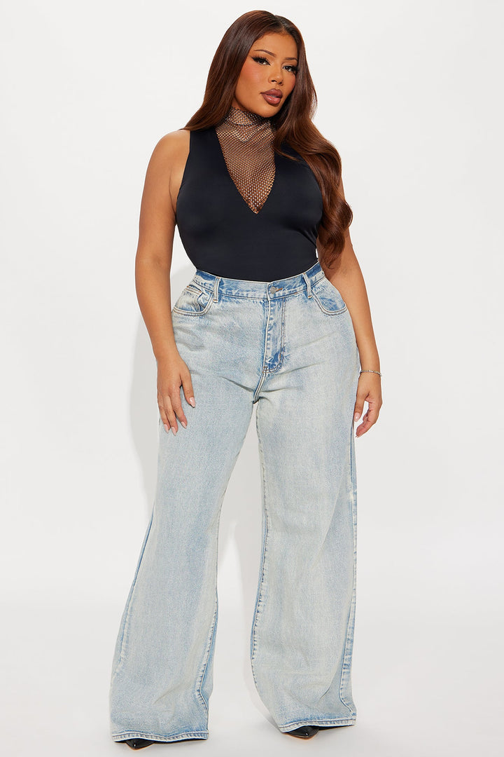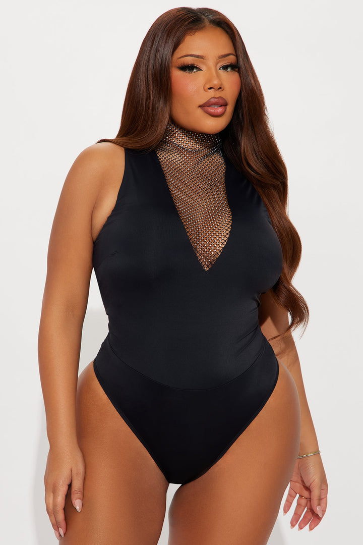 Cataleya Mesh Rhinestone Bodysuit - Black