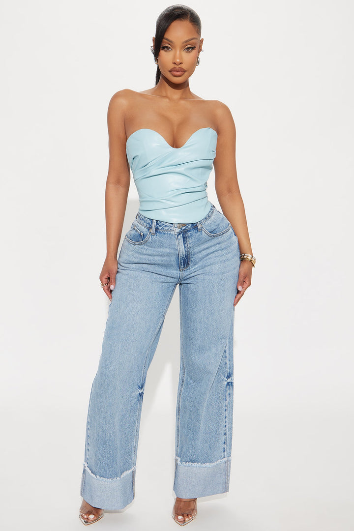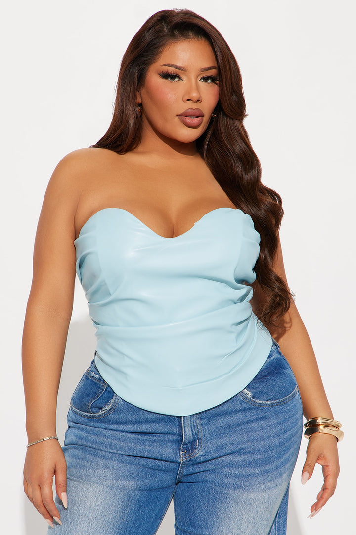 Catching Looks Faux Leather Top - Light Blue