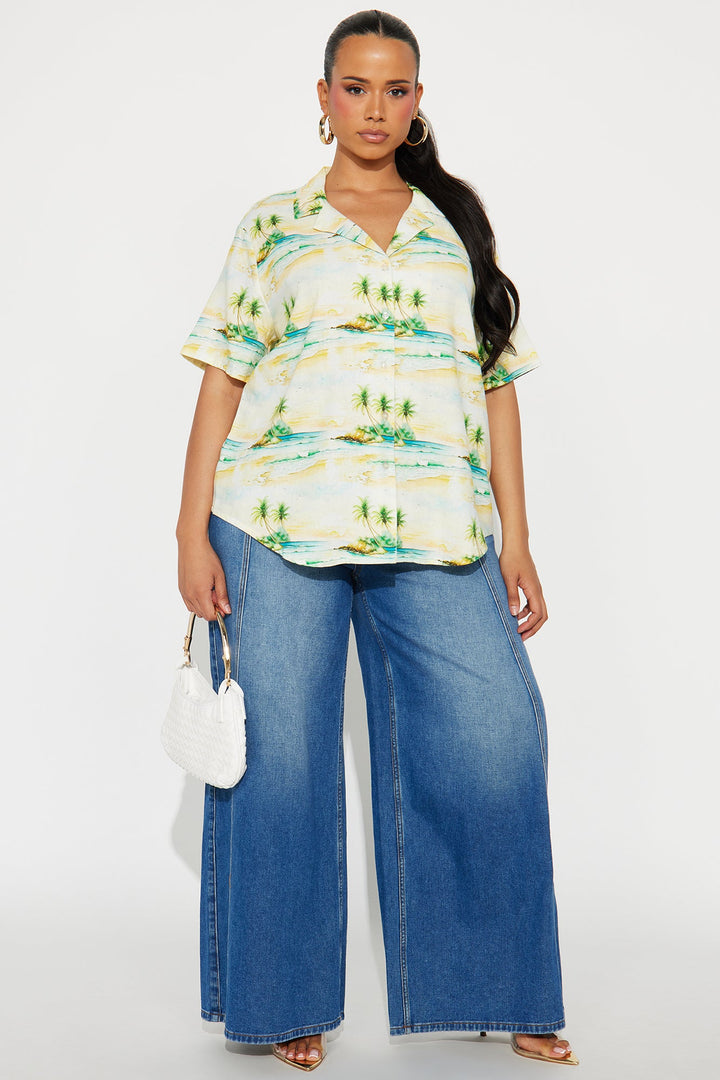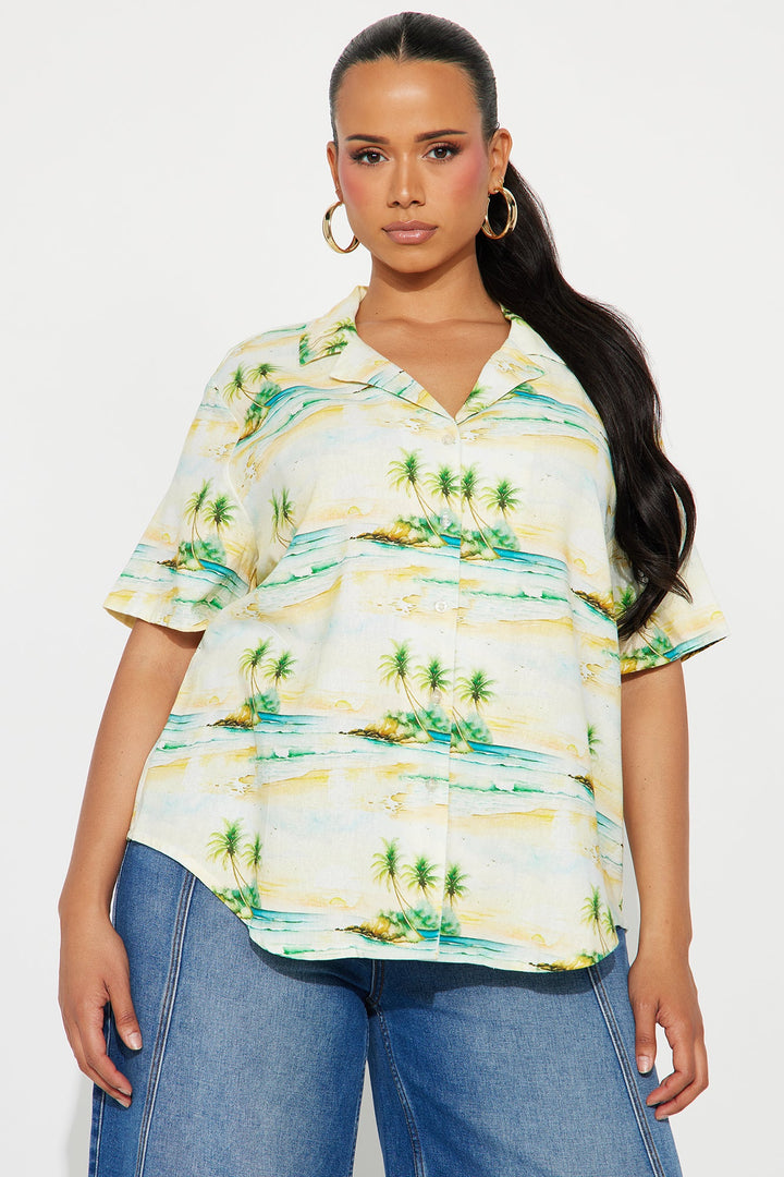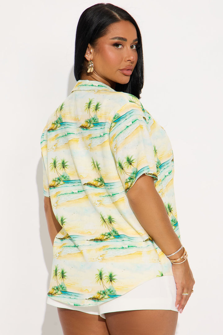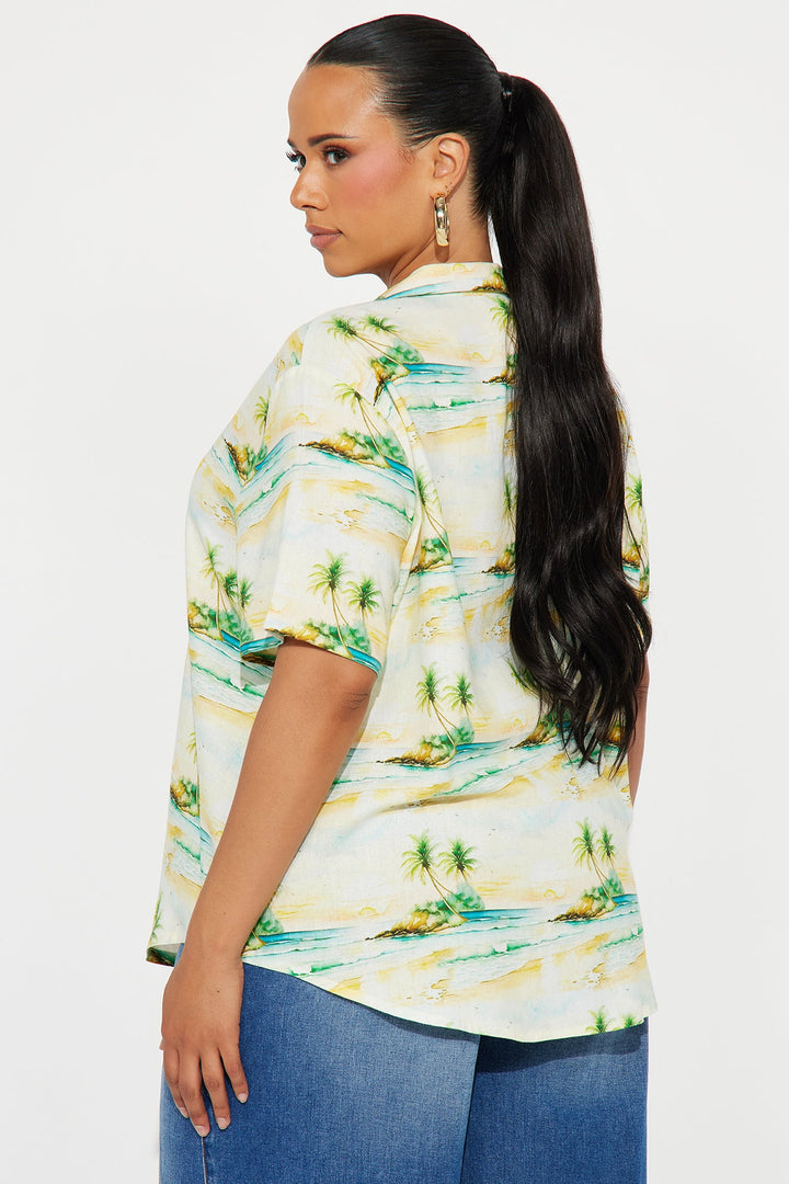 Catching Waves All Day Linen Oversized Button Up Shirt - Yellow/combo