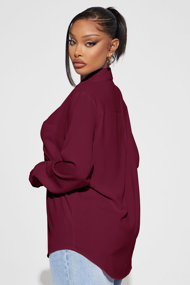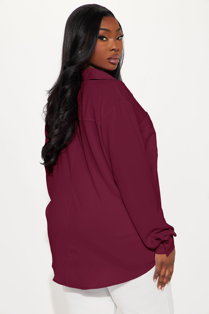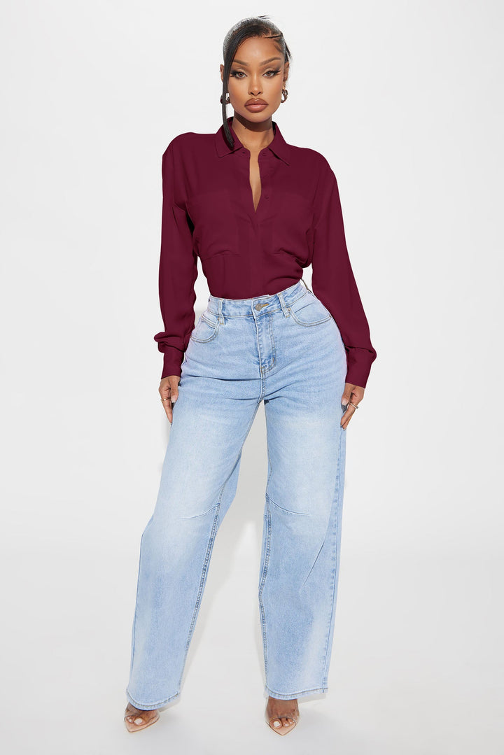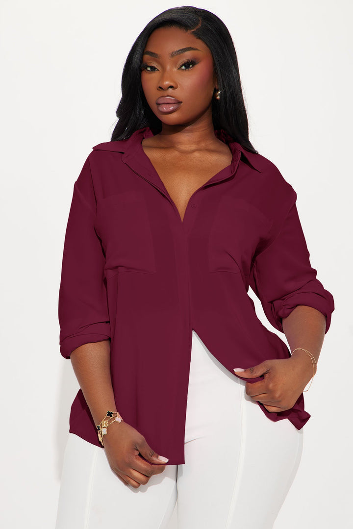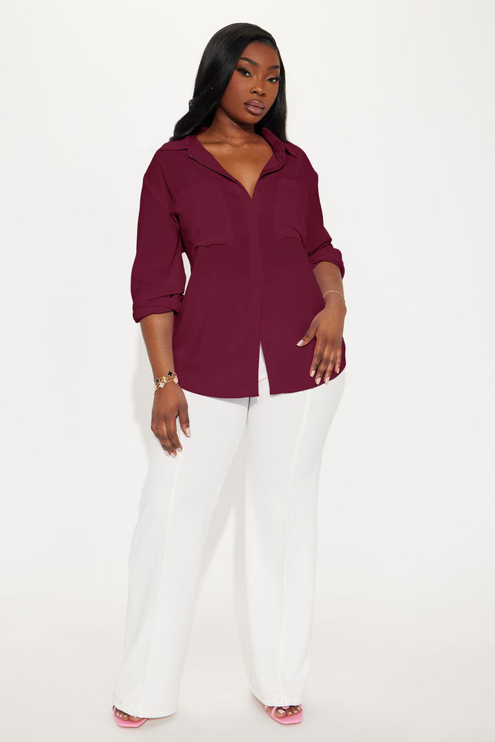 Available In Black, Blue, Burgundy, Taupe, White And Wine. | Button Front | Collared | Chest Pocket | Long Sleeve | Self: 100%Polyester | Imported