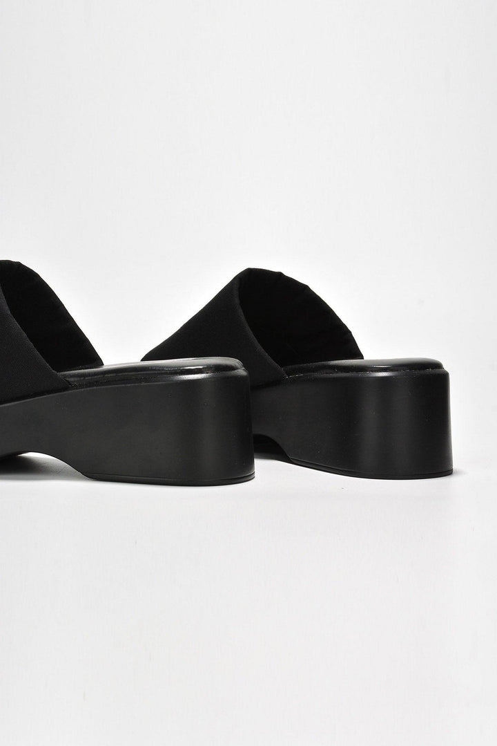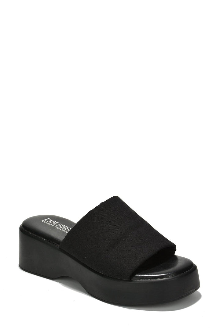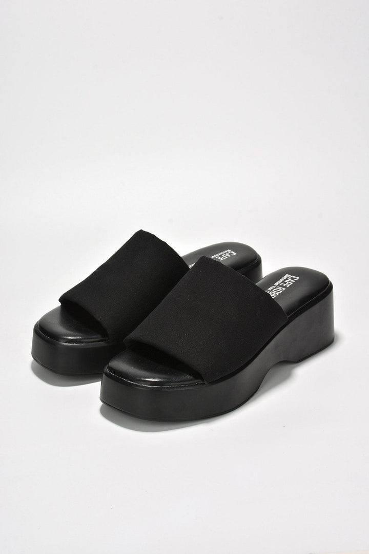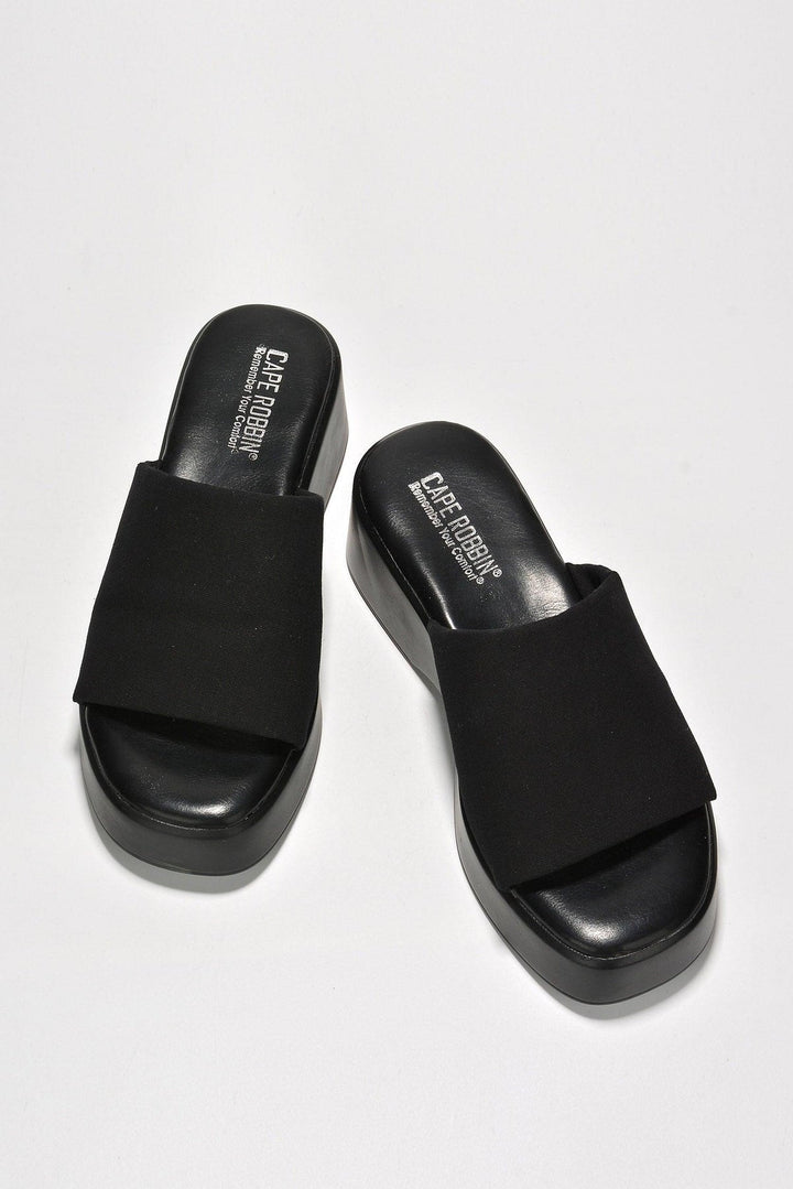 CHARGES - BLACK - SANDALS by CAPE ROBBIN open toe padded insole fabric upper platform sandals open back round toe wide foot friendly These stylish platform sandals feature an open toe,open back,and round toe design,making them perfect for any warm-weather occasion. The fabric upper is breathable and comfortable,while the padded insole provides extra cushioning and support. The platform height adds a subtle boost of height and style,making these sandals an easy way to add a fashionable touch to any look.