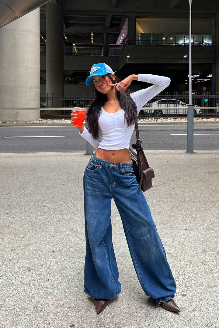 Chelsea Drop Waist Baggy Jeans - Medium Wash