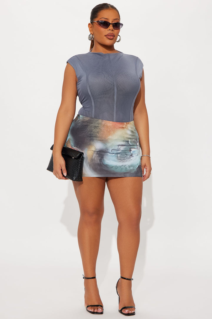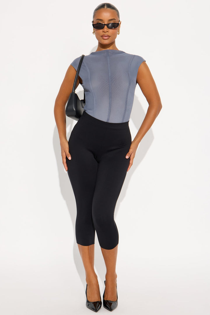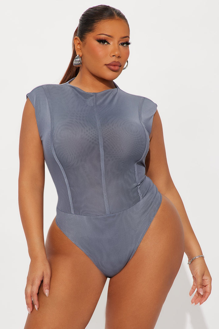 Available In Black And Stone. | Final Sale | Mesh Bodysuit | High Neck | Cap Sleeve | Seaming | Thong Bottom | Snap Closure | Stretch | Self : 95% Polyester 5% Spandex | Imported