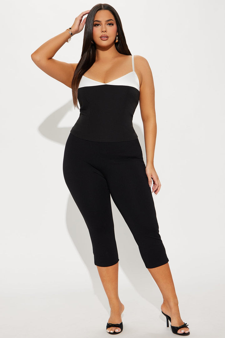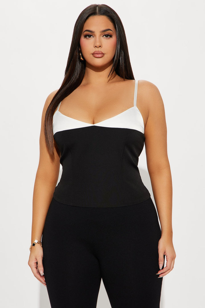 Available In Black/White. | Contrast Top | Stretch | Adjustable Straps | Satin Trim | Smocked Back | Shell : 95% Polyester , 5% Spandex | Contrast : 97% Polyester , 5% Spandex | Imported