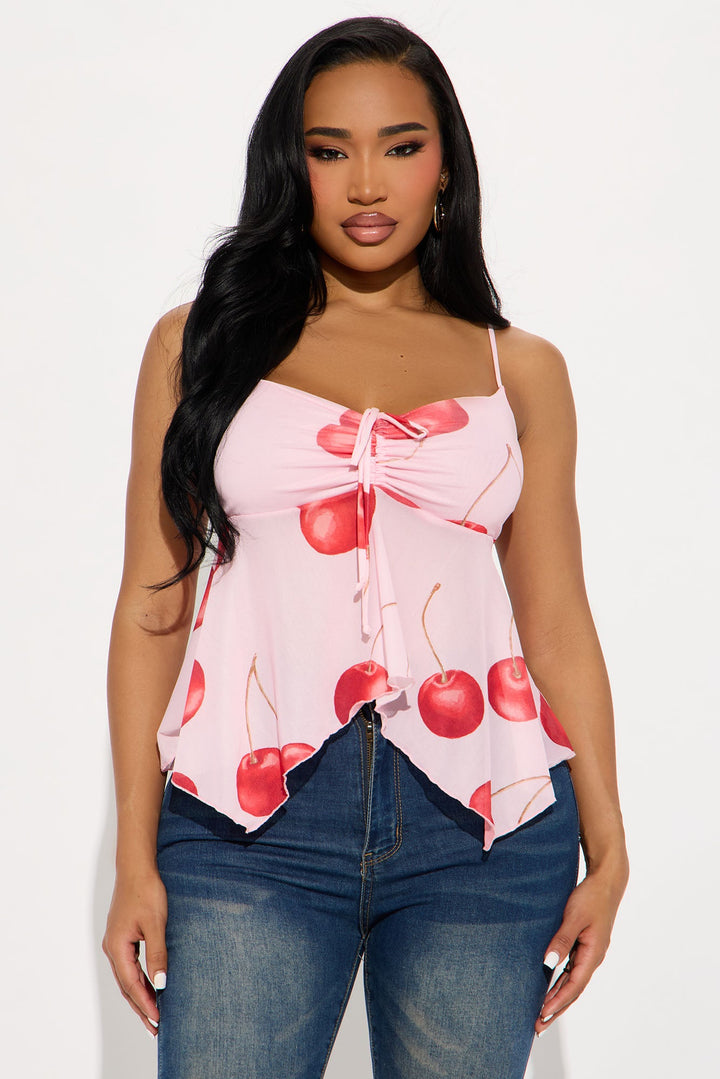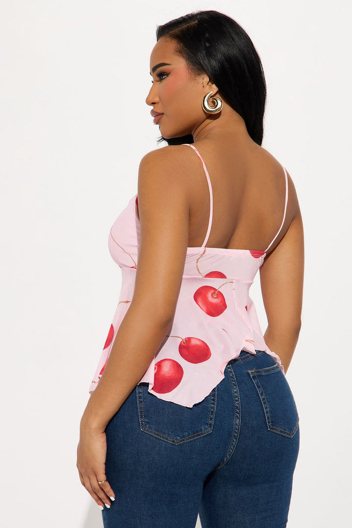 Cherry On Top Mesh Ruched Blouse - Pink/combo