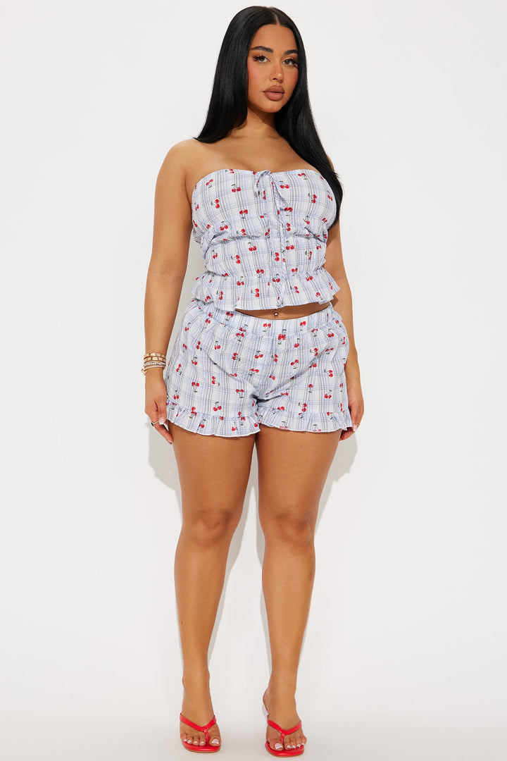 Cherry Pop Plaid Tube Top - Blue/combo