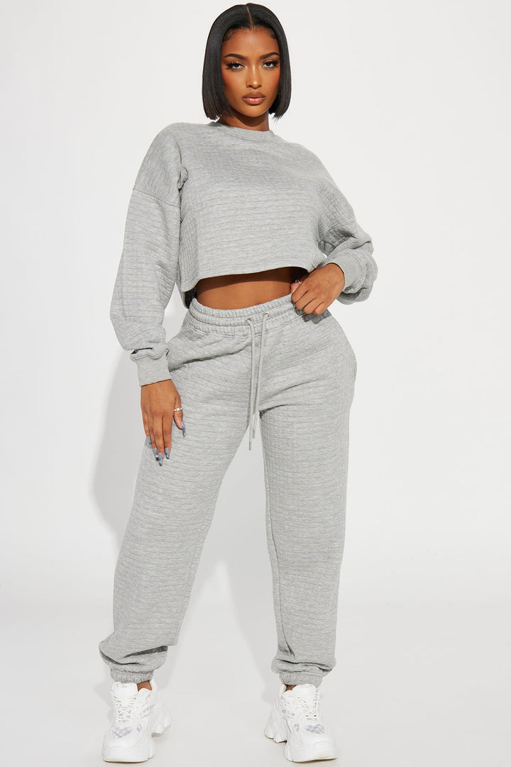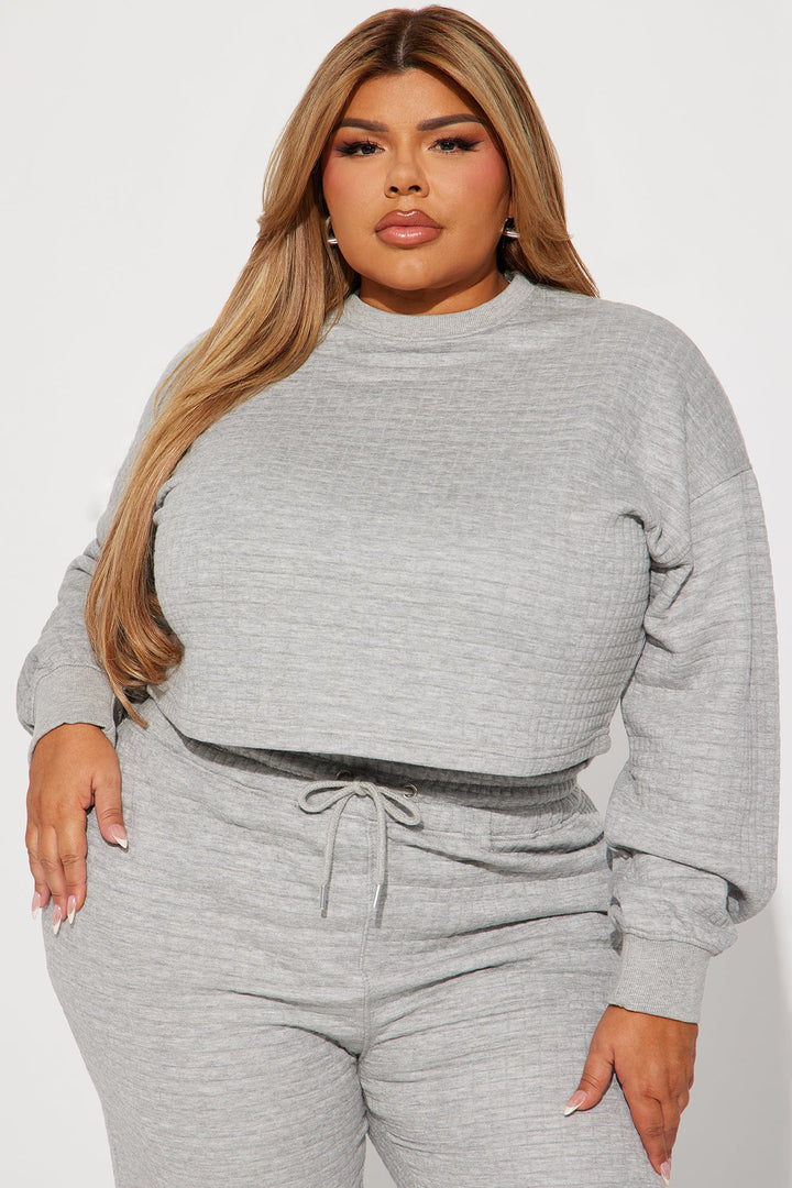 Available In Heather Grey. | Crew Neck Sweatshirt | Long Sleeve | Quilted | Pair With "Chill With Me Joggers" | 52% Cotton 48% Polyester | Imported