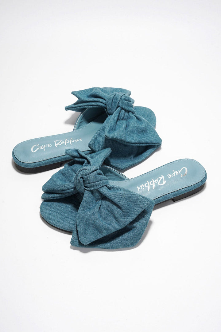 CHRYSLER - DENIM - SANDALS by CAPE ROBBIN Flat sandals Slip on PU leather insole with memory foam cushioning for added comfort Oversize bow detail Round toe Step into playful elegance with the Chrysler chic bow flat andals. These charming sandals feature an elegant satin or trendy soft denim finish, and a large and stylish bow detail. Versatile and chic, they effortlessly pair with shorts, skirts, or summer dresses, making them perfect for casual outings, day trips, or relaxed weekends.