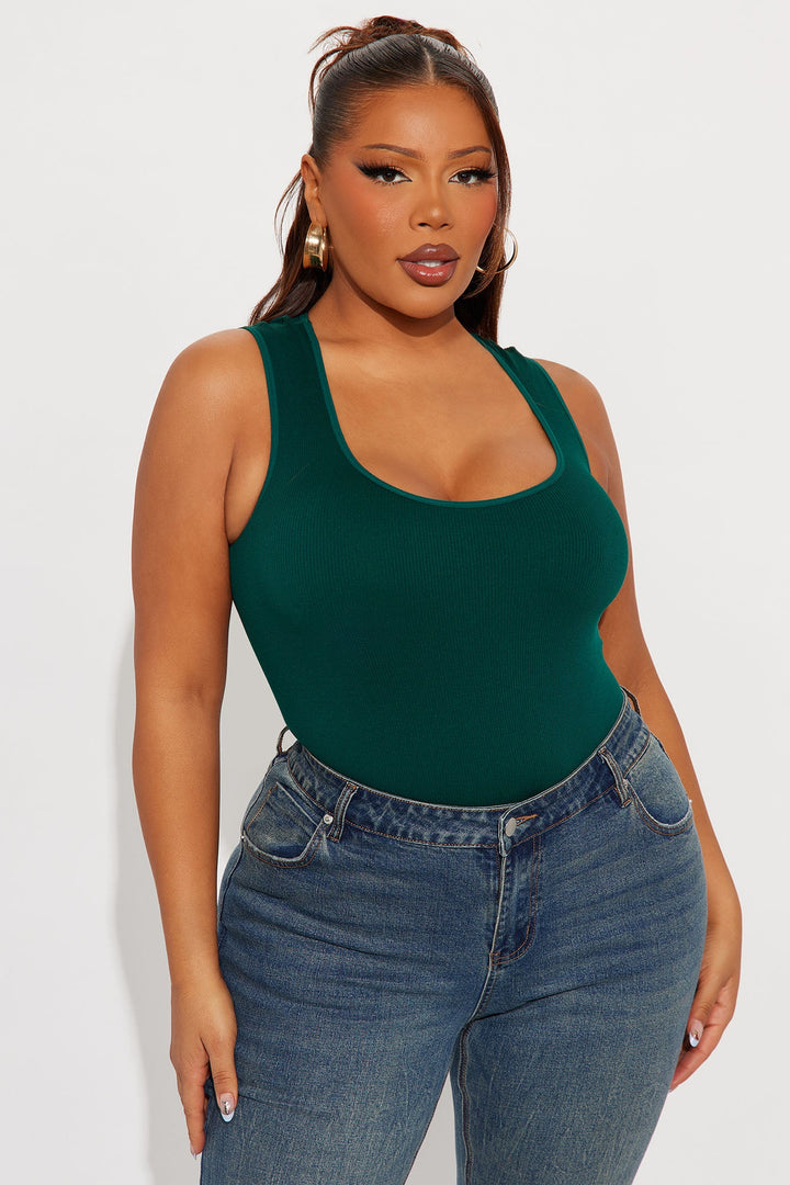 Available In Brown, DarkRed, Hunter Green, Taupe And White. | Seamless Bodysuit | Scoop Neck | Wide Straps | Thong Bottom | Snap Button Closure | Stretch | Final Sale | Self: 95% Polyester 5% Spandex | Imported