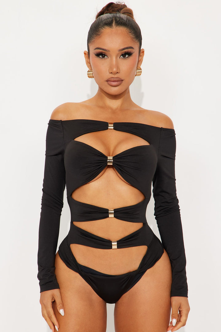 Cityscape Off Shoulder Cut Out Bodysuit - Black