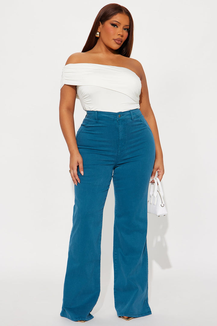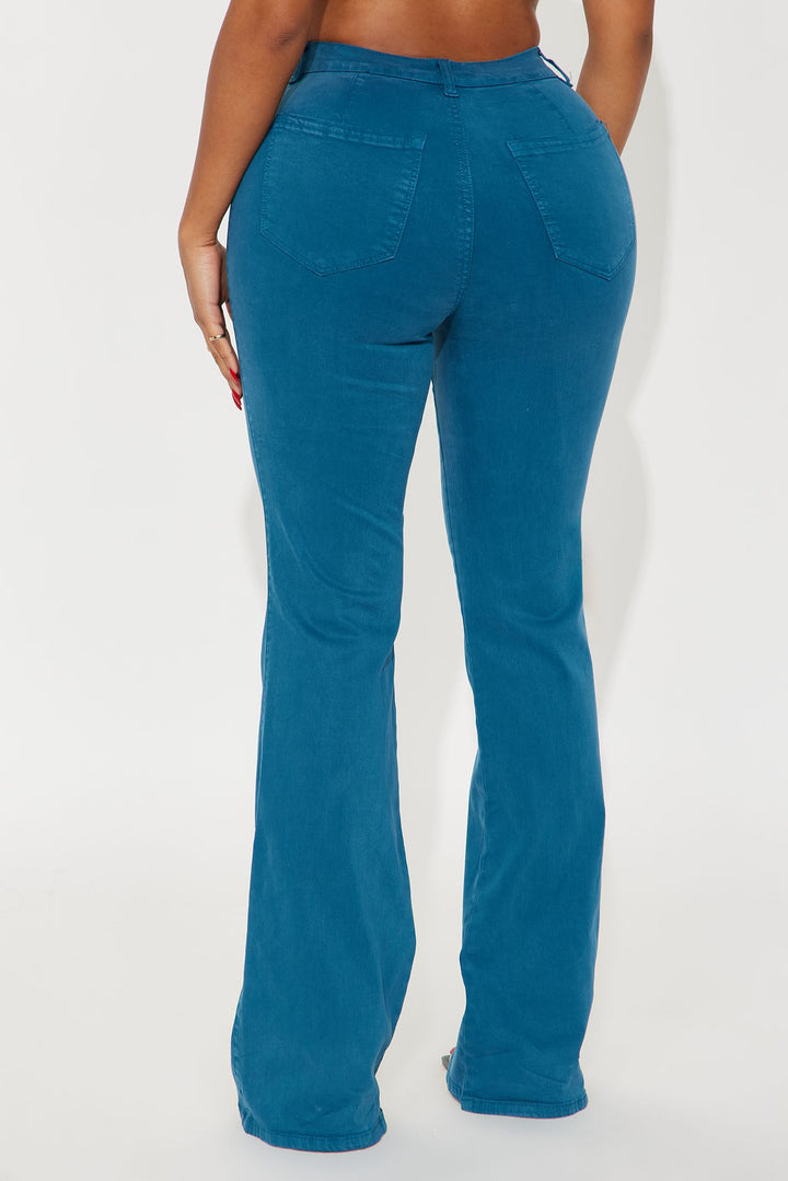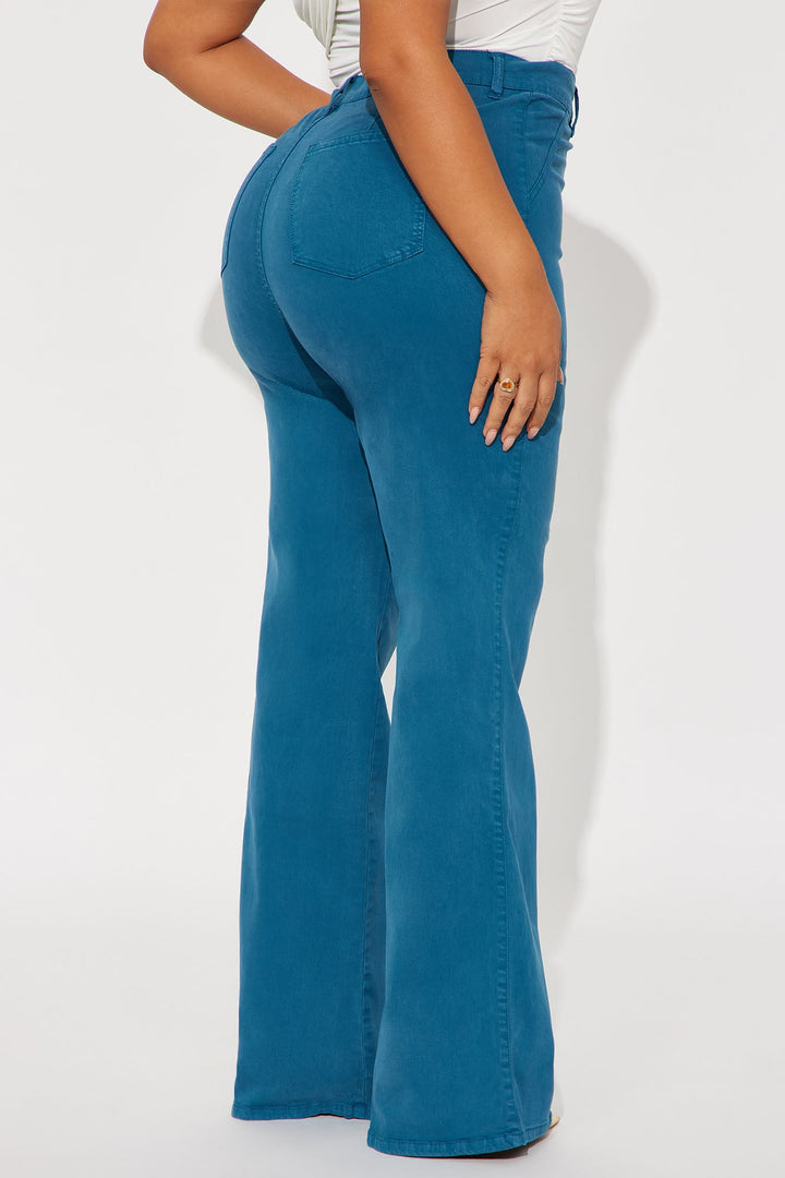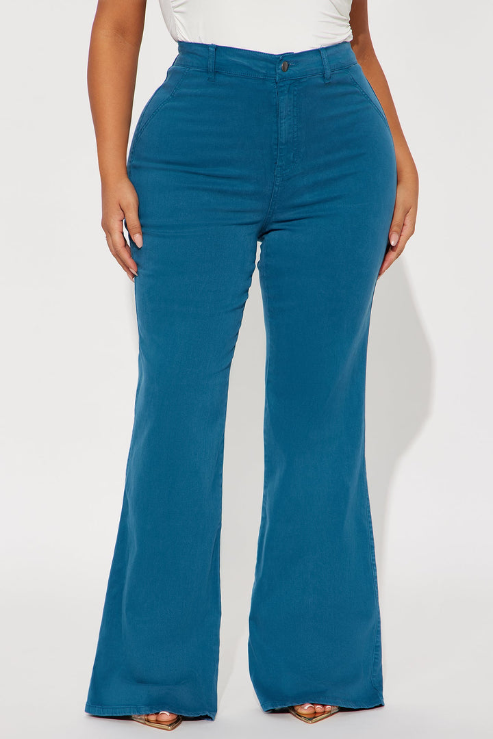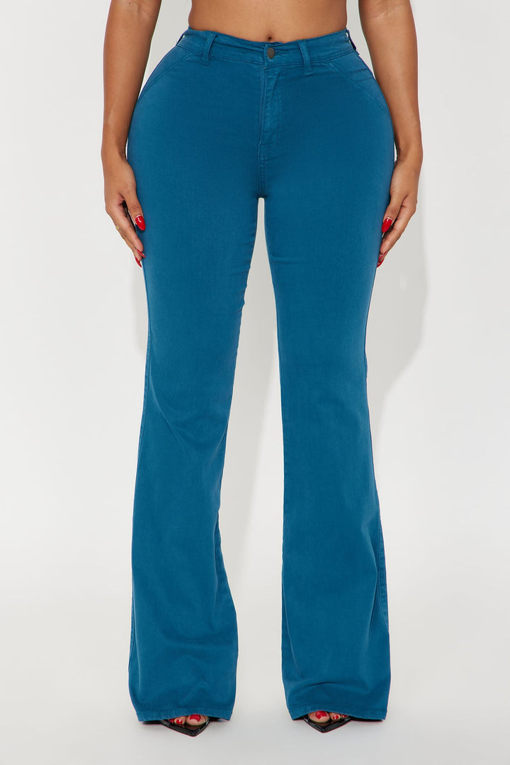 Available In Black, Brown And Teal. | Flare Jean | Functional Back Pockets | 11.5" High Rise | 34" Inseam | Medium Stretch | Self: 50% Tencel 35% Cotton 12% Polyester 3% Spandex | Imported