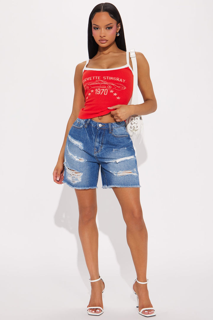 Available In Red. | Scoop Neck | Sleeveless | Front Screen | Contrast Trim | Stretch | Disclaimer: Due To The Printing Process A Difference In Saturation May Occur. Each Garment Is Unique. | 100% Cotton | Imported